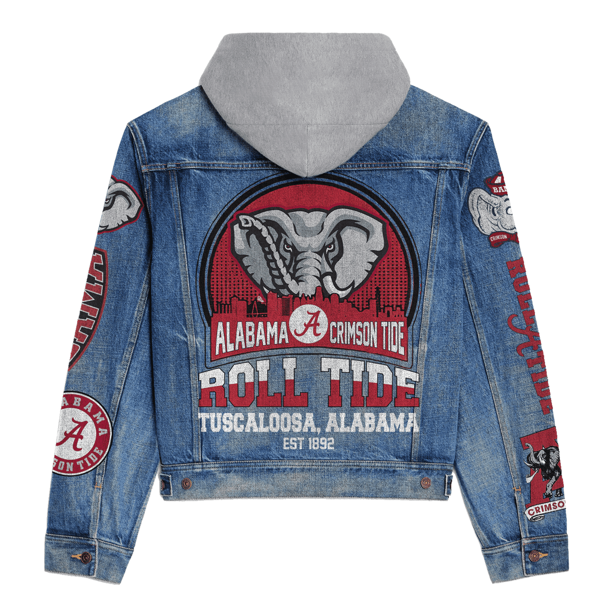 Get Your Game Day Outfit Today! This limited edition Abama Crimson Tide hooded denim jacket is the ideal sports apparel for football enthusiasts. Whether you’re cheering from the stands or enjoying a casual day out, this jacket will keep you stylish and comfortable.