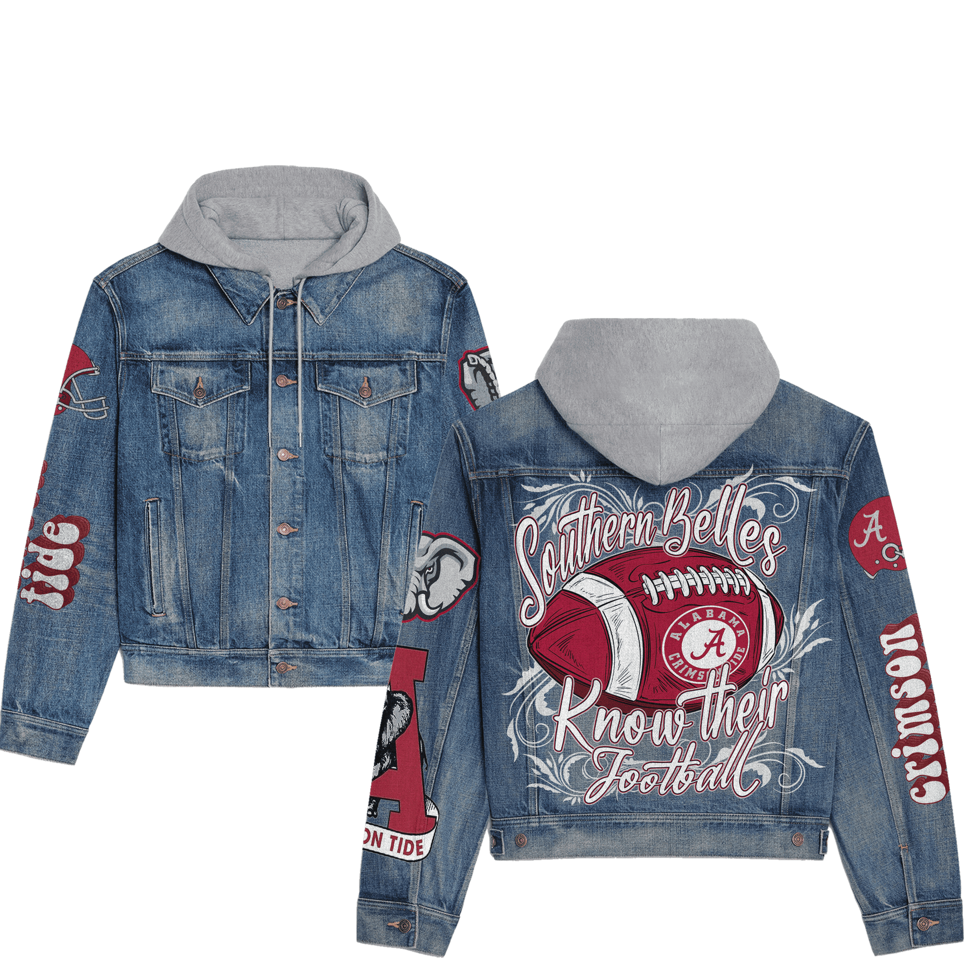 This Abama Crimson Tide hooded denim jacket is more than just a piece of clothing; it’s a statement of loyalty and style. Whether you’re at the game or celebrating with friends, this jacket will keep you warm and looking great!