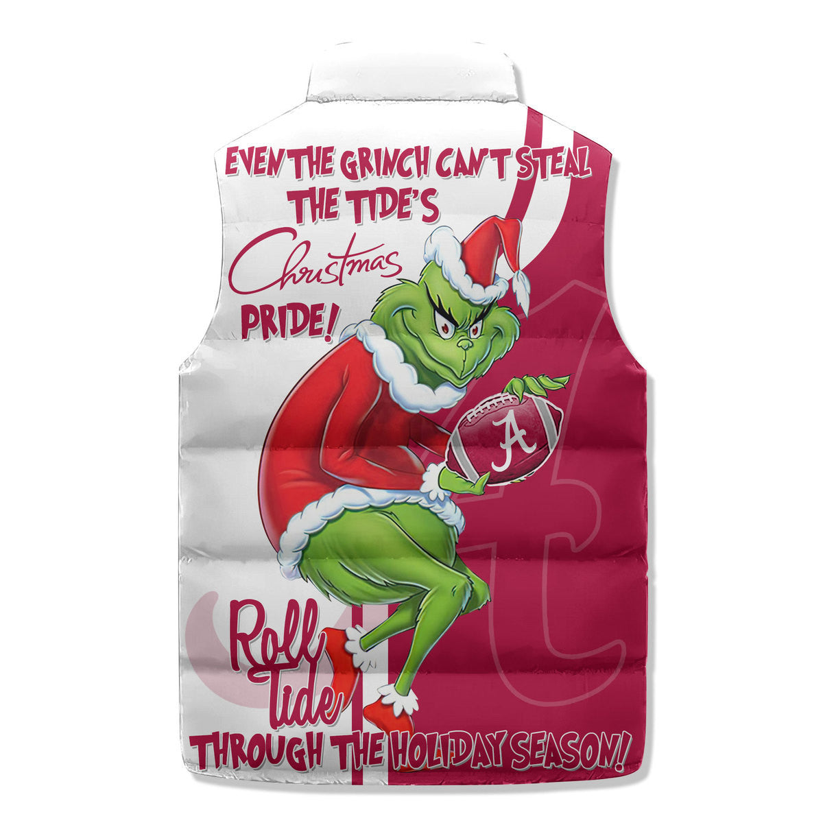Order now and elevate your winter wardrobe with this stylish Alabama Crimson Tide Sleeveless Puffer Jacket. Limited stock available – don’t miss out on your chance to stay warm and showcase your team spirit!