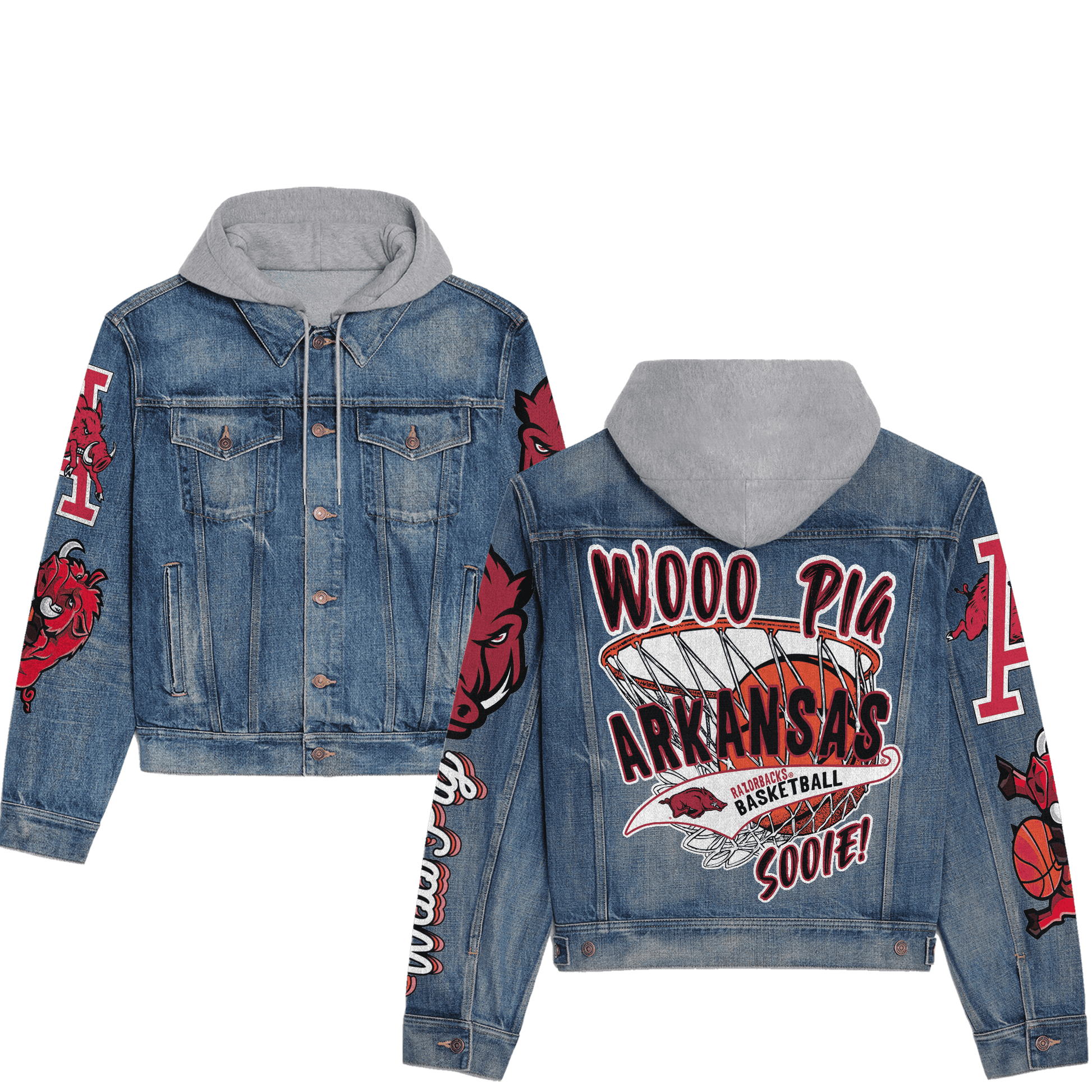 Stylish Hooded Denim Jacket for Arkansas Razorbacks Fans
