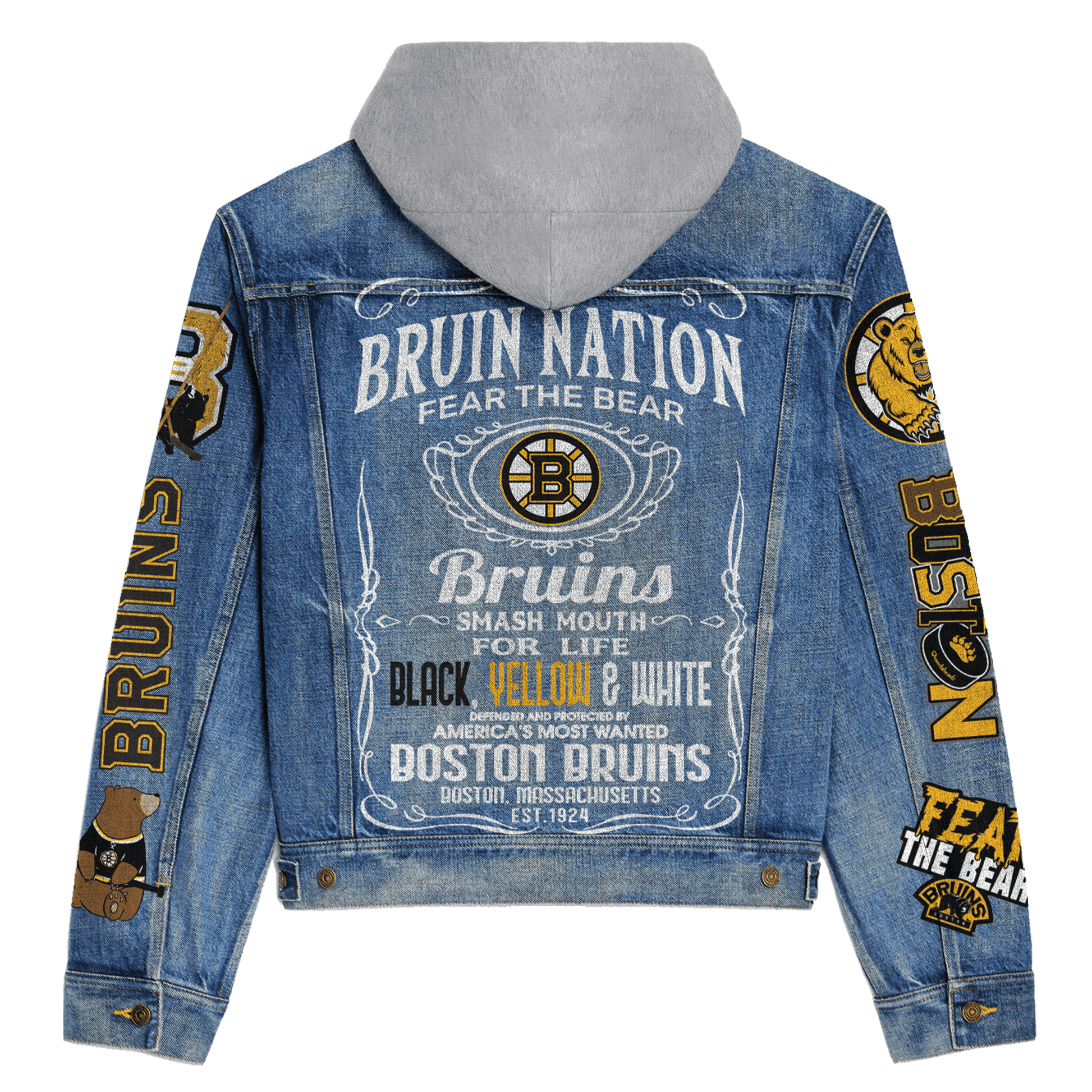 Show your team spirit with this stylish Boston Bruins Hooded Denim Jacket, the perfect blend of comfort and fashion. Made from 100% cotton, this jacket is designed for die-hard Bruins fans. Whether you’re at the game or out on the town, this jacket will keep you looking sharp and feeling warm.