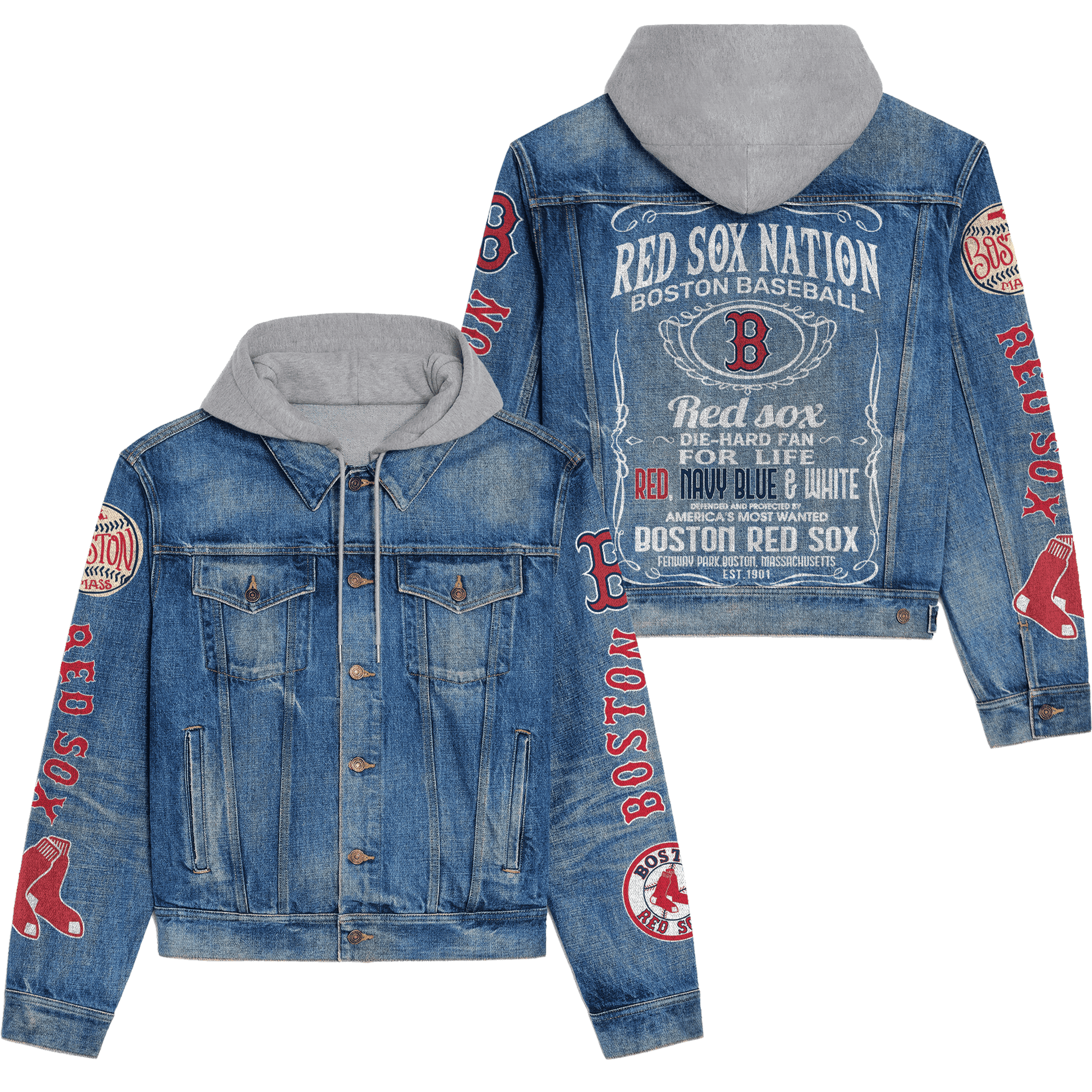 This premium hooded denim jacket is not just a piece of clothing—it’s essential NFL merchandise for true Boston Red Sox fans. Perfect for game days, casual outings, or as a standout piece in your winter fan gear collection. Show your team spirit while staying stylish!