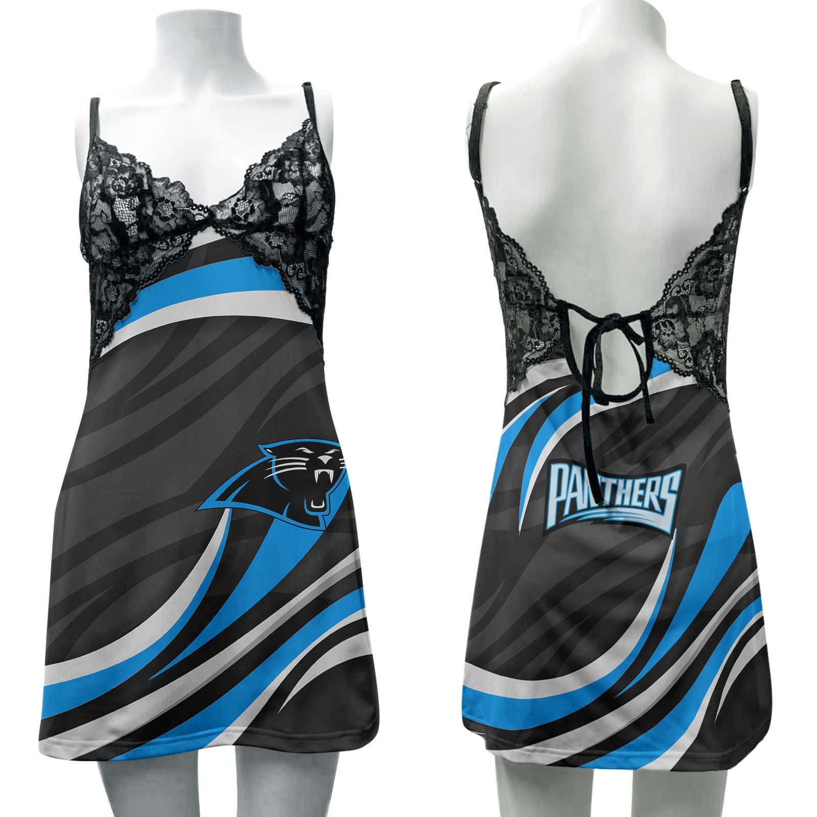 Carolina Panthers Lace Back Strap Slip Dress – Limited Edition