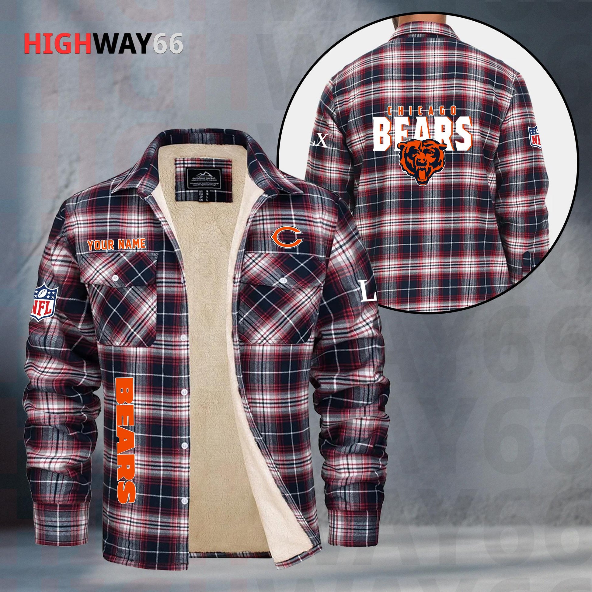Chicago Bears Fleece Flannel Plaid Jacket MN70