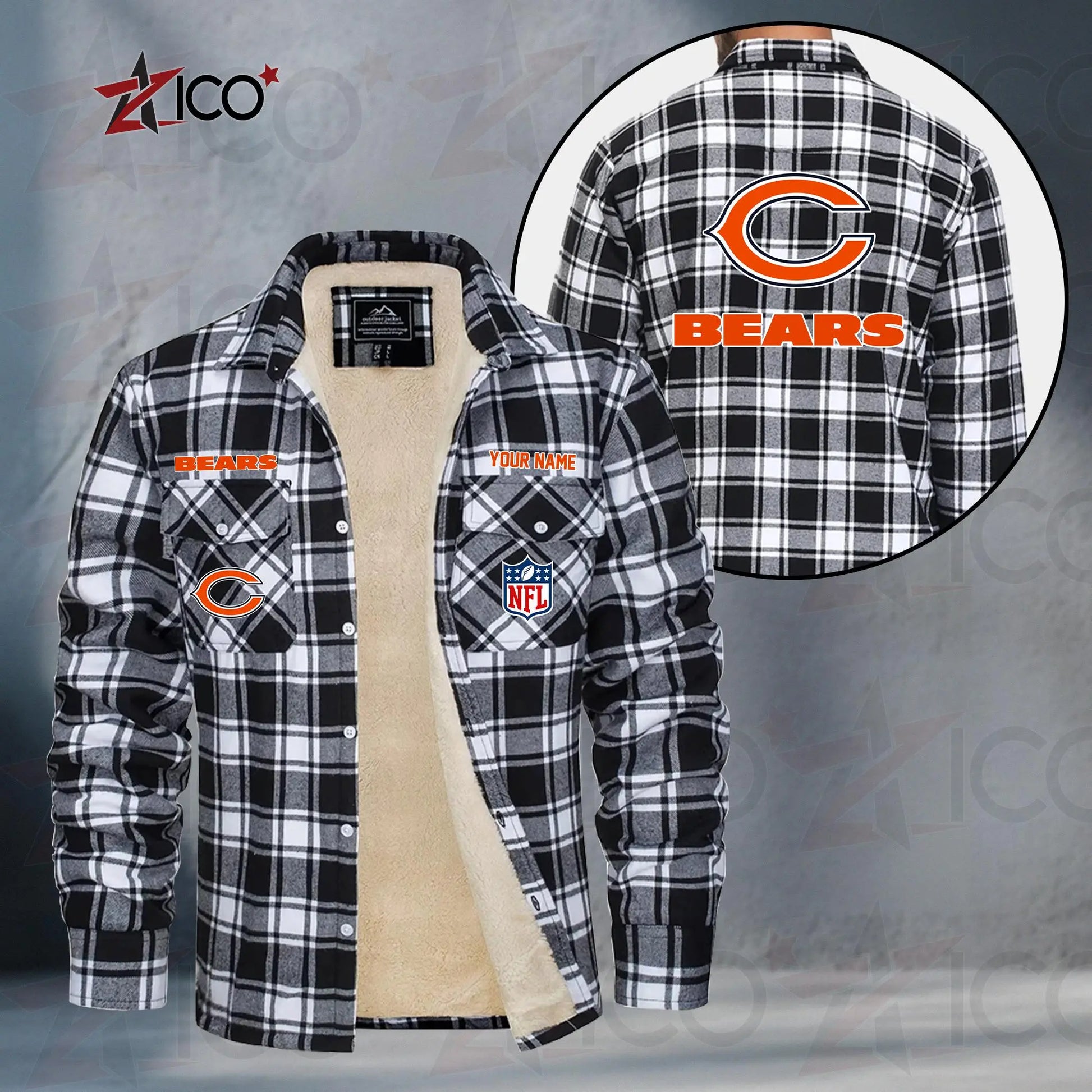 Chicago Bears Fleece Flannel Plaid Jacket TG38
