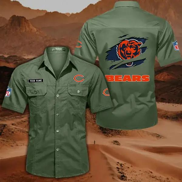 With its tactical military-style design, the shirt features two buttoned chest cargo pockets for your essentials, a classic lapel collar, and a regular fit that offers both comfort and a sharp, masculine silhouette. The short sleeves keep you cool, while the curved hem subtly enhances your shape.