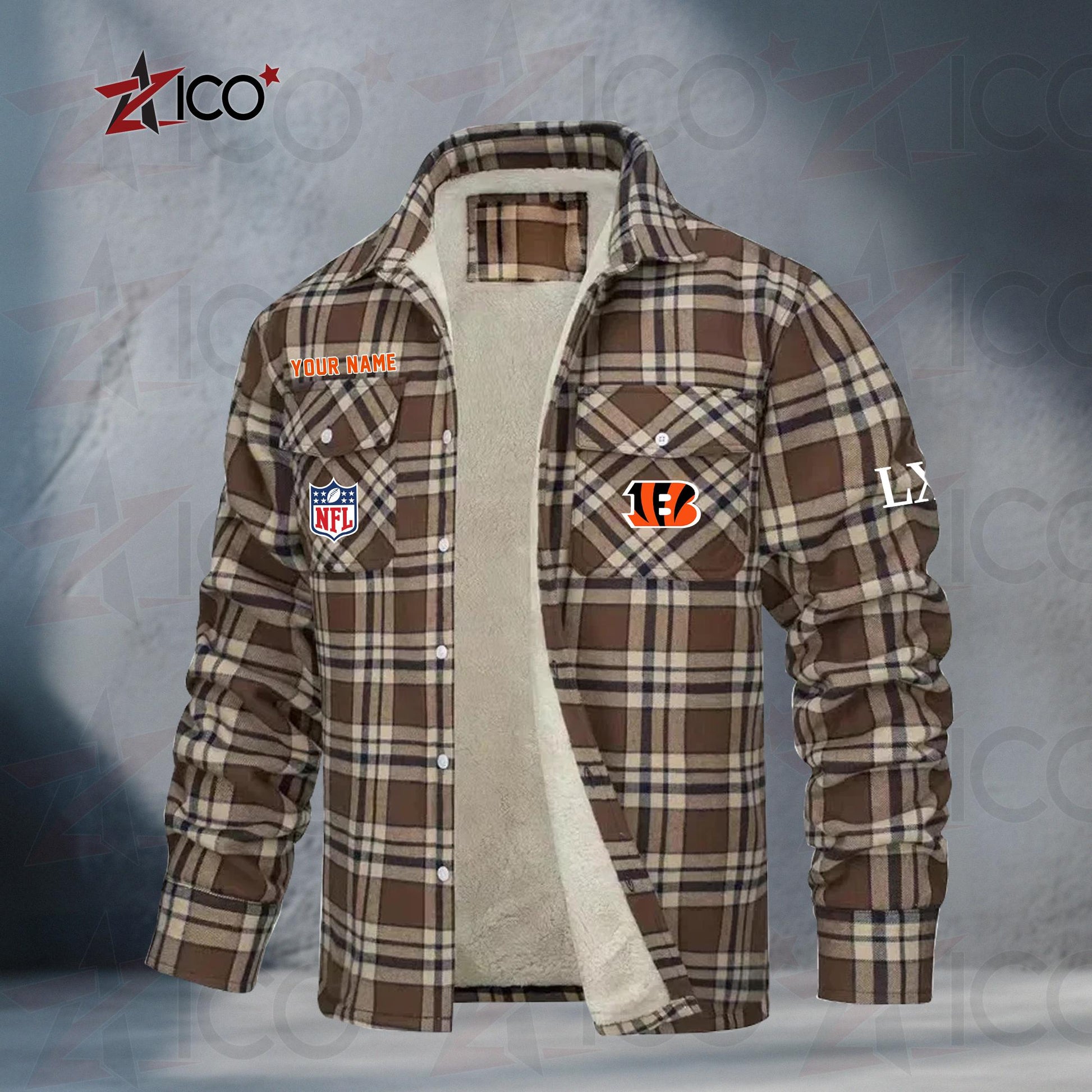 Cincinnati Bengals Fleece Flannel Plaid Jacket MN07