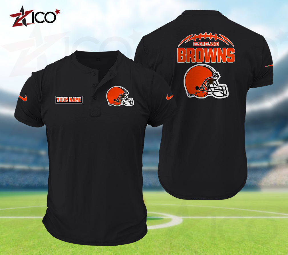 Cleveland Browns Henley Short Sleeve T-Shirt Trending 2025 AZMN2DHS000008