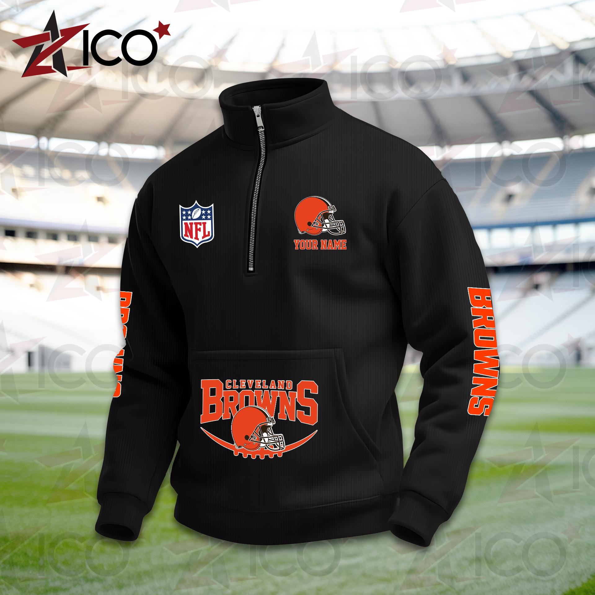 Cleveland Browns High Neck Half Zip Pocket Sweatshirt New Trending AZTG2DPS000040