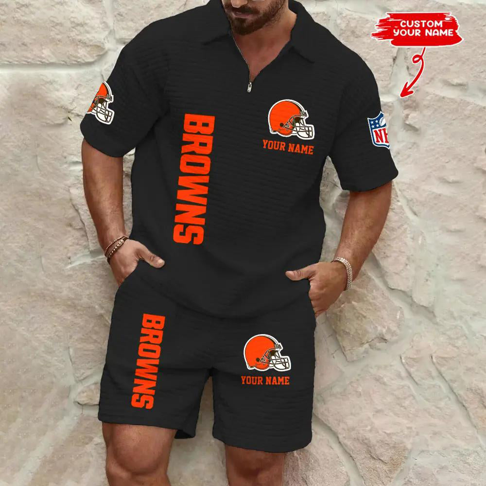 Cleveland Browns Men’s Waffle Pattern Half Zipper Shirt And Shorts AZBT2DWSS000048