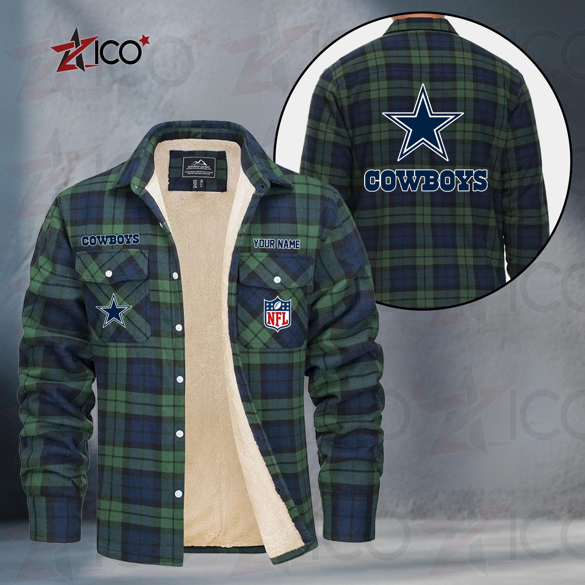 Dallas Cowboys Fleece Flannel Plaid Jacket TG41