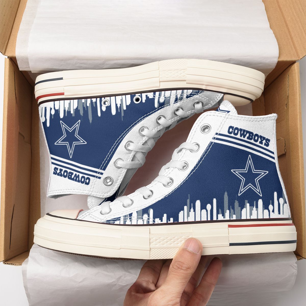 Step up your game day outfit with our exclusive Dallas Cowboys New High Top Canvas Shoes, crafted for ultimate comfort and style. These custom-made shoes showcase a full canvas double-sided print, perfect for any dedicated fan. Whether you’re cheering from the stands or just out and about, these shoes are your ideal NFL fan gear.