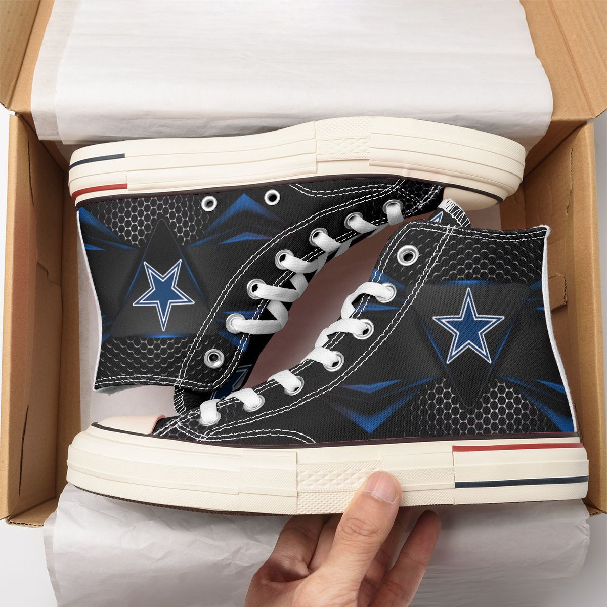 Step into game day with our exclusive Dallas Cowboys New High Top Canvas Shoes! Custom-made-to-order and handcrafted to the highest quality standards, these sporty shoes are perfect for die-hard fans or anyone looking to show off their team spirit.