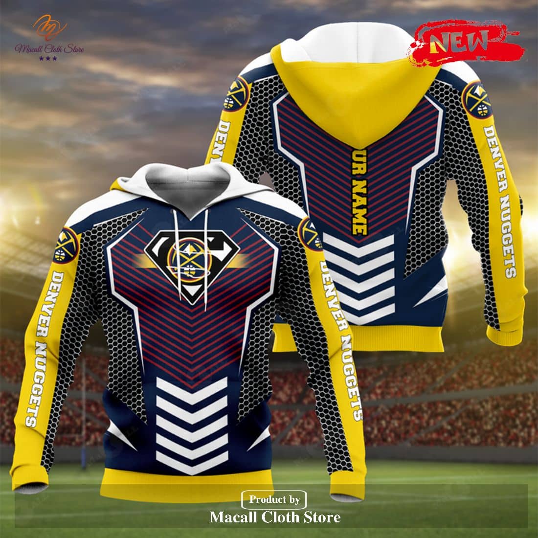 Elevate your game day outfit with our Denver Nuggets Personalized All Over Printed Hoodie, a must-have piece of NFL merchandise and sports fan apparel. This custom-made, ultra-soft hoodie is handcrafted to meet the highest quality standards for ultimate comfort, making it perfect for all die-hard Denver Nuggets fans.