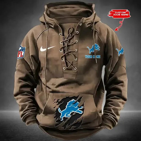 Detroit Lions Custom Lace-Up Drawstring Hoodie HA11