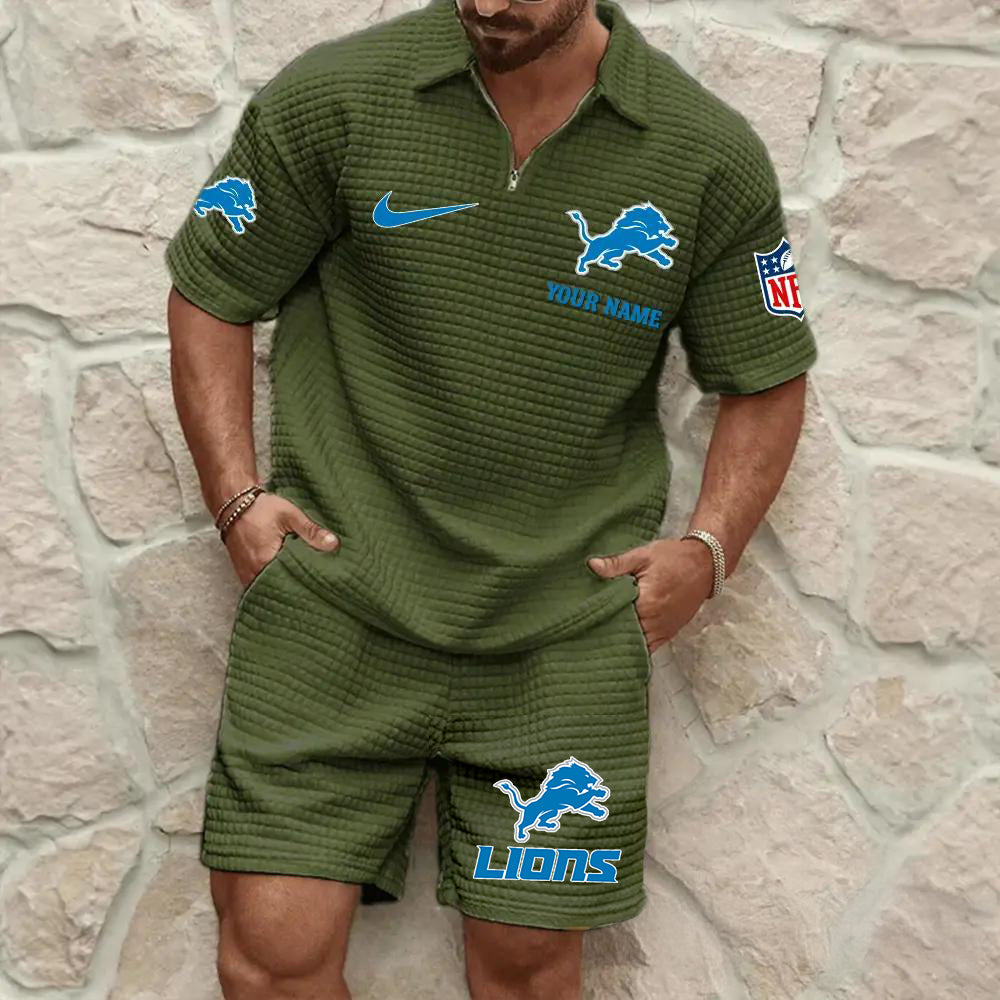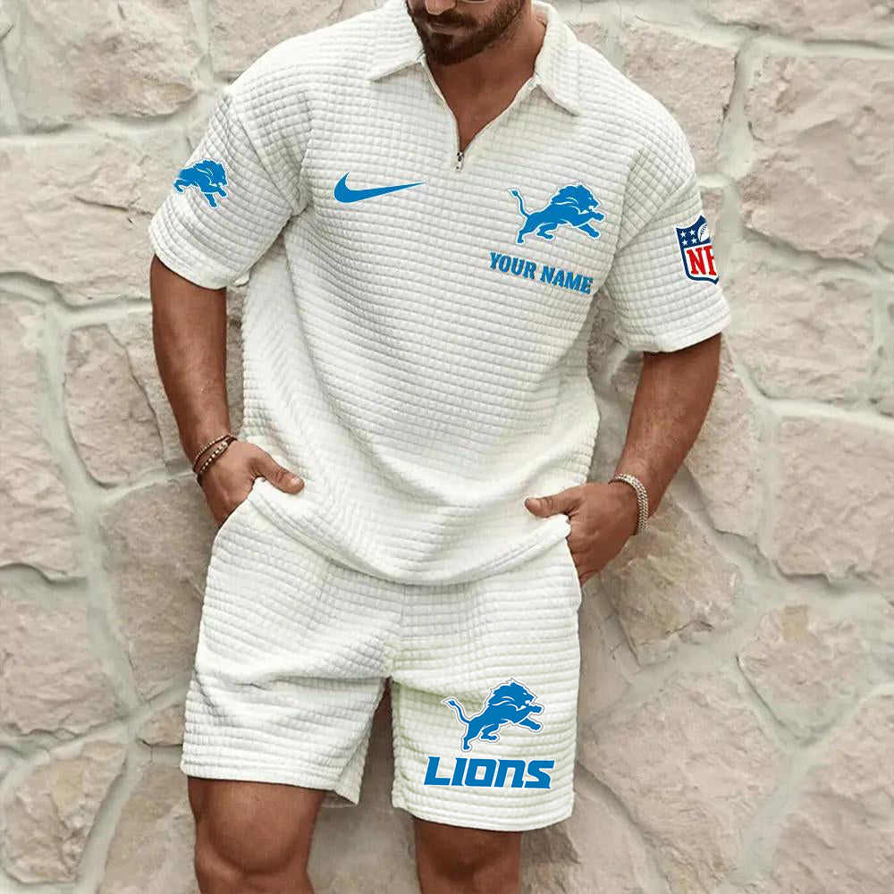 Detroit Lions Men’s Waffle Pattern Half Zipper Shirt And Shorts AZBT2DWSS000069