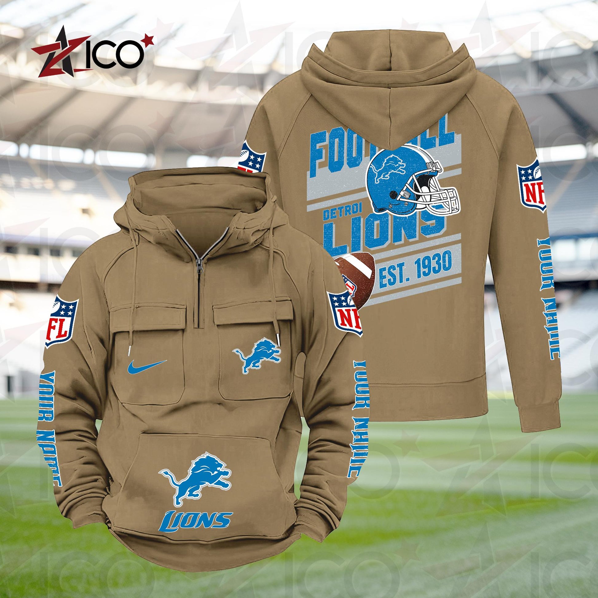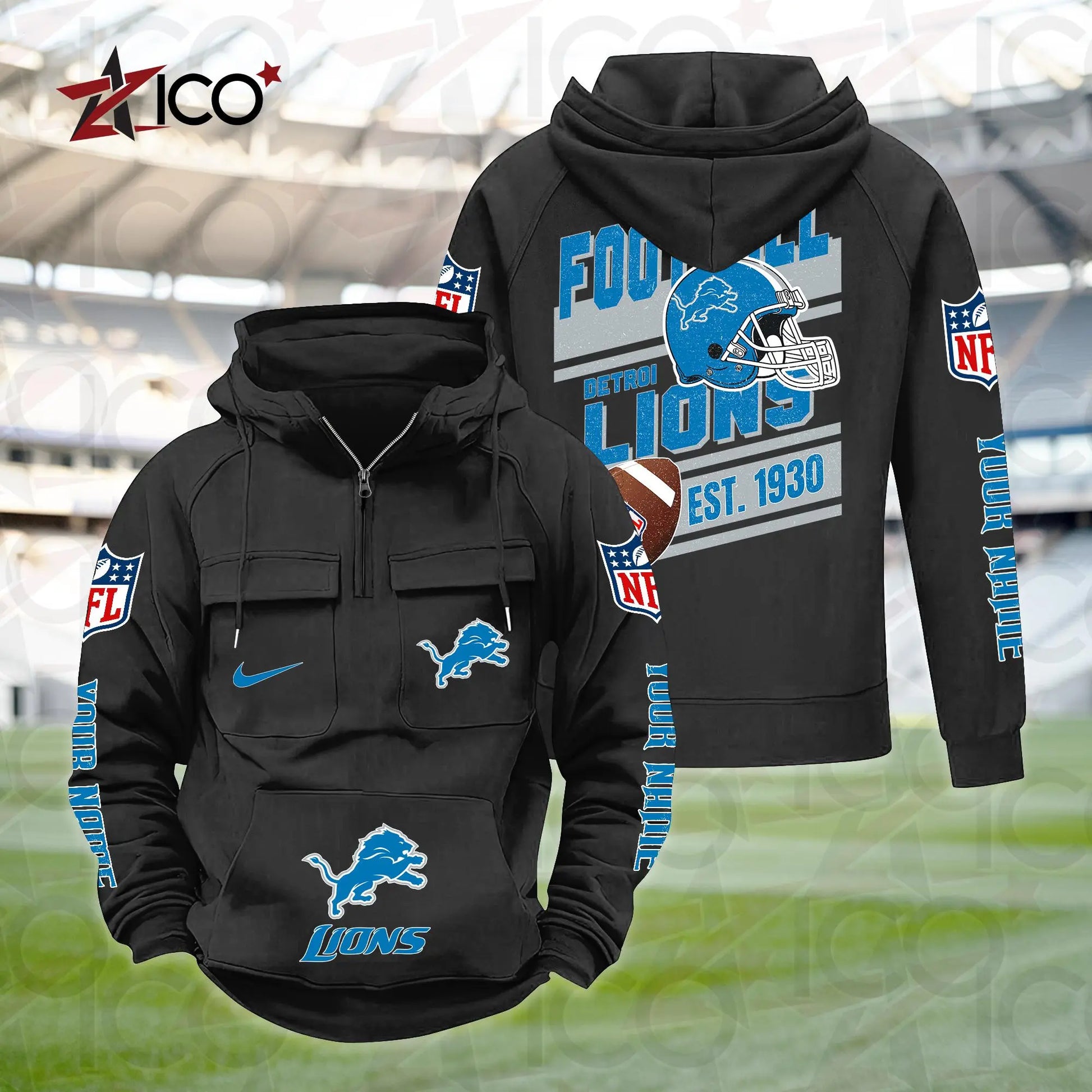 Detroit Lions Personalized Multi-Pockets Zip Hoodie New 2025 AZTGMZHD000231