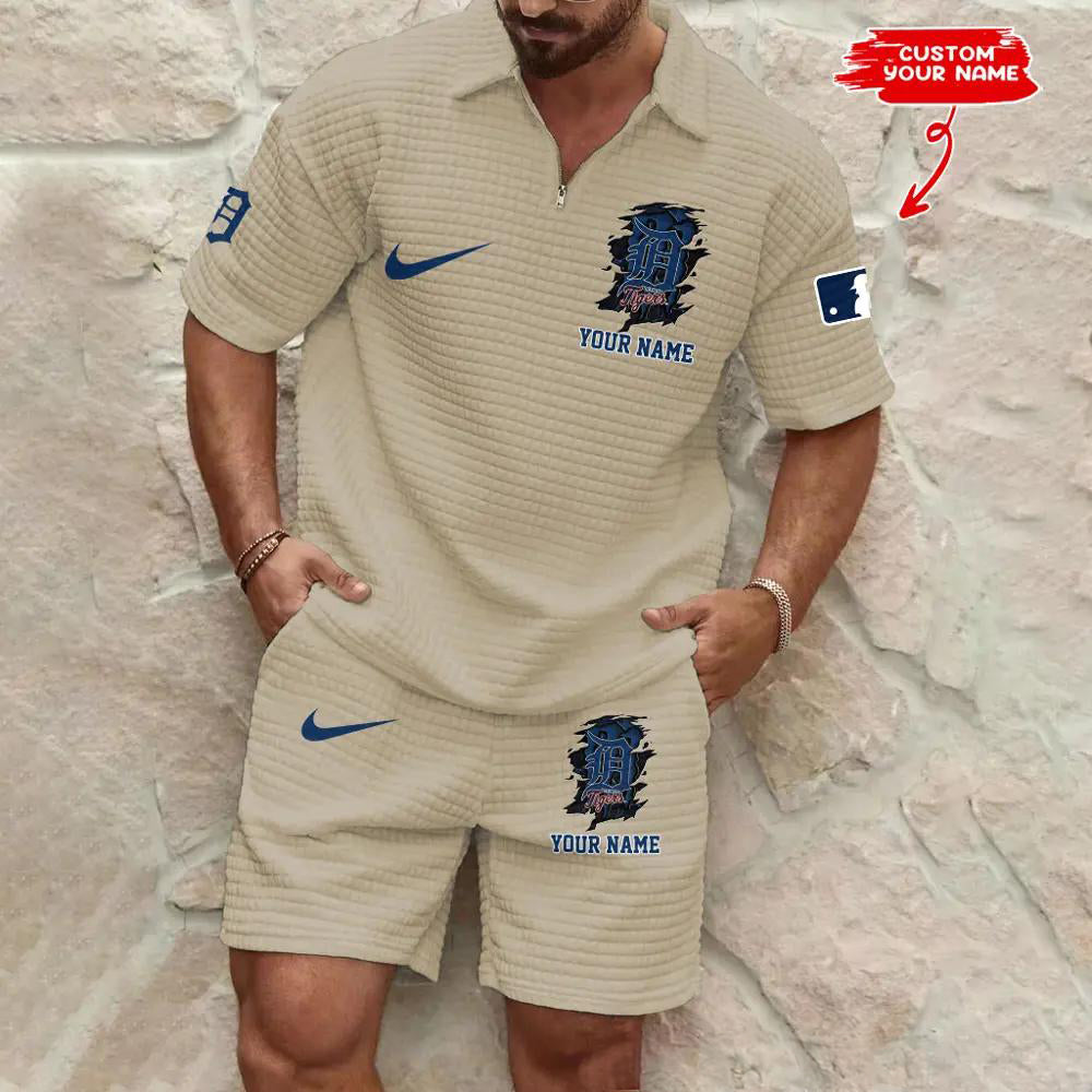 Detroit Tigers Men’s Waffle Pattern Half Zipper Shirt And Shorts AZBT2DWSS000073