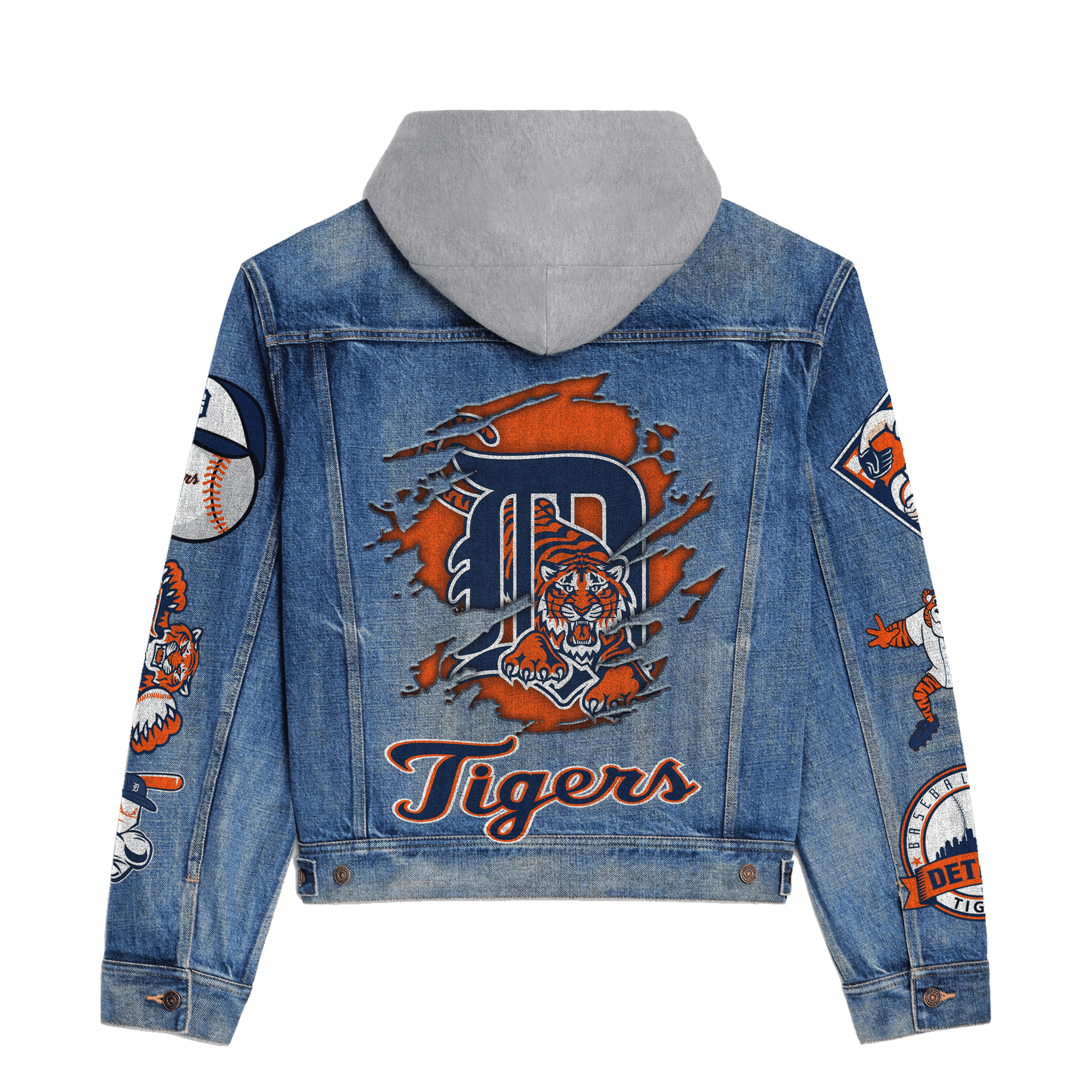 Elevate Your Game Day Look with Our Detroit Tigers Hooded Denim Jacket!