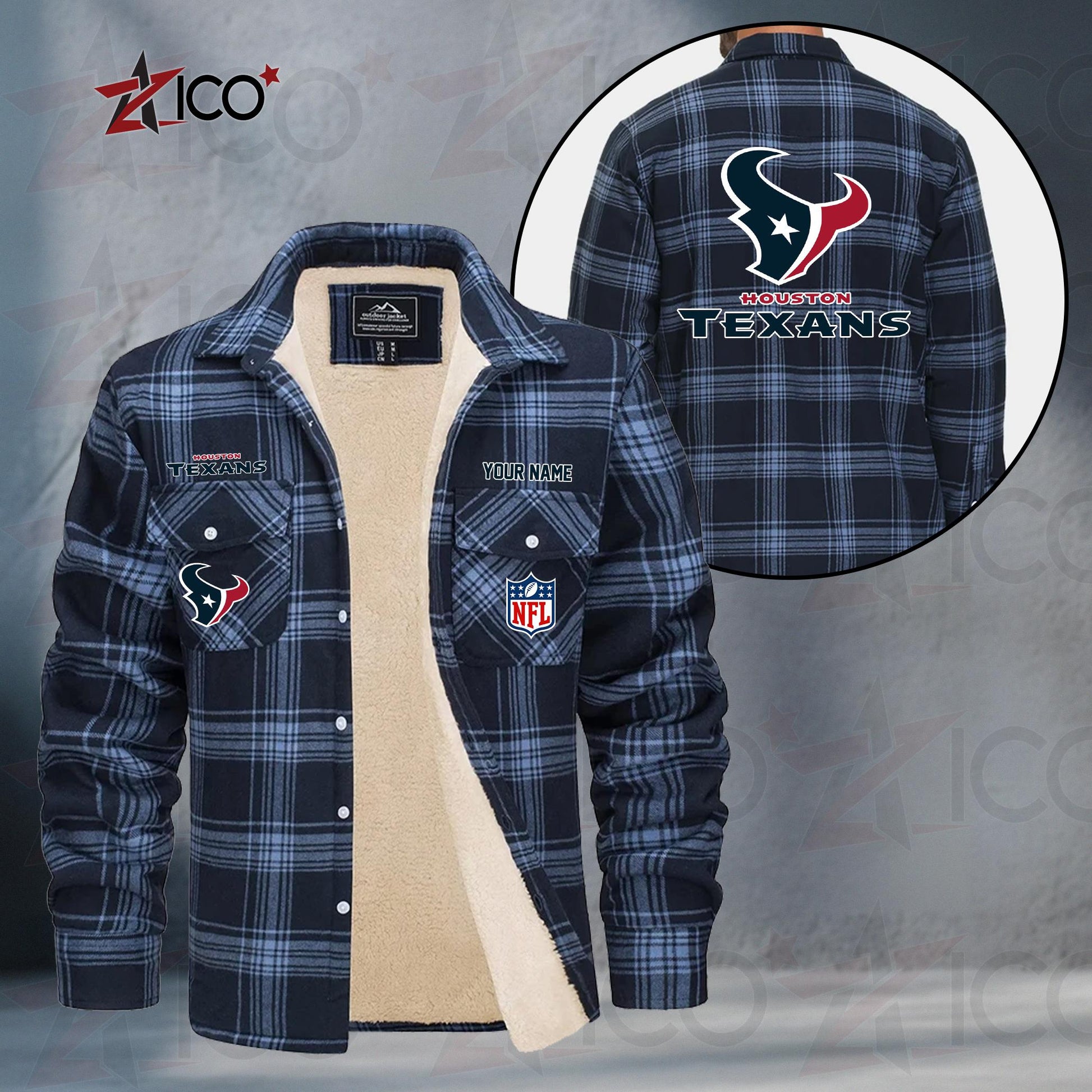 Houston Texans Fleece Flannel Plaid Jacket TG45