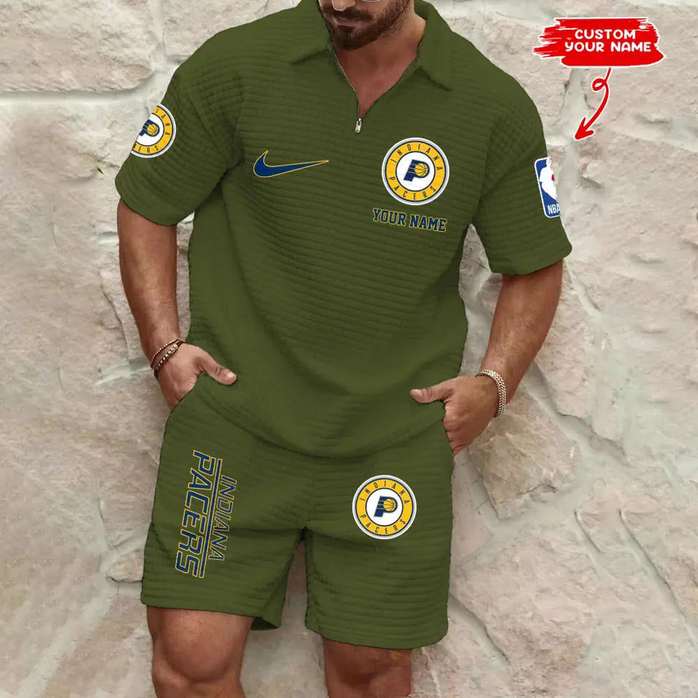 Indiana Pacers Men’s Waffle Pattern Half Zipper Shirt And Shorts AZBT2DWSS000086