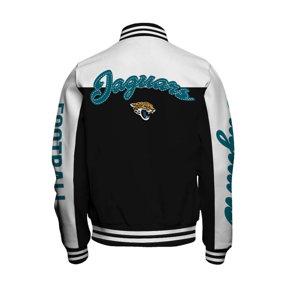 The Jacksonville Jaguars varsity jacket is the ultimate statement piece for football enthusiasts. Perfect for creating a stylish game day outfit, this trendy yet practical jacket is ideal for colder seasons and outdoor sports events. Elevate your casual wear with this must-have sports apparel!