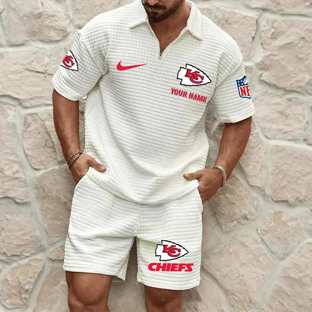 Kansas City Chiefs Men’s Waffle Pattern Half Zipper Shirt And Shorts AZBT2DWSS000097