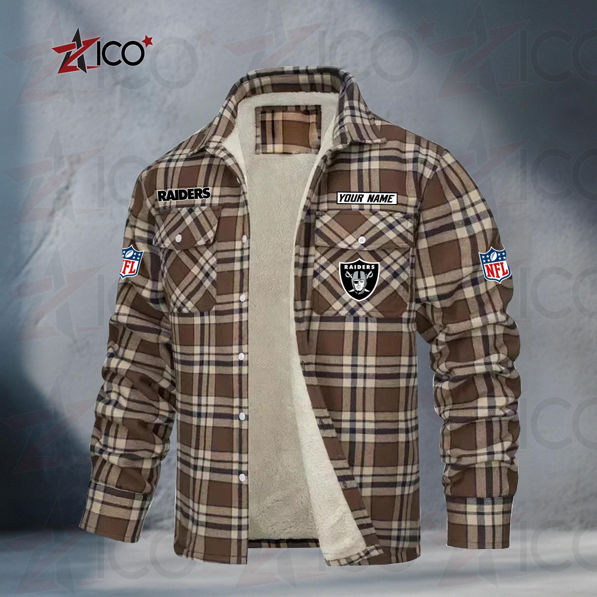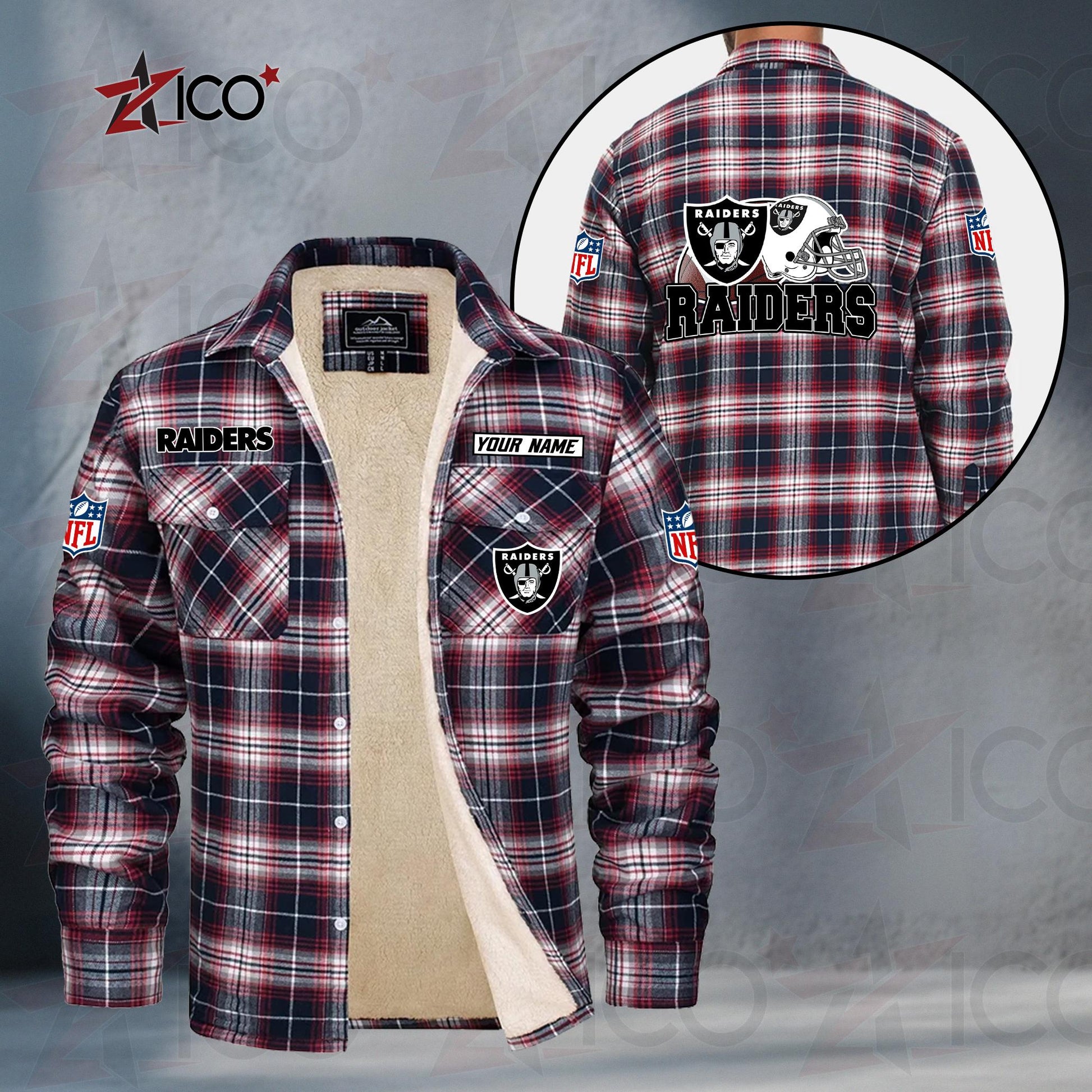 The durable flannel exterior blocks out the chill, while the ultra-soft sherpa-style lining keeps you warm from kickoff to the final whistle. Featuring bold NFL-inspired team graphics and an optional custom name or player number, this jacket is the perfect mix of comfort, spirit, and individuality.