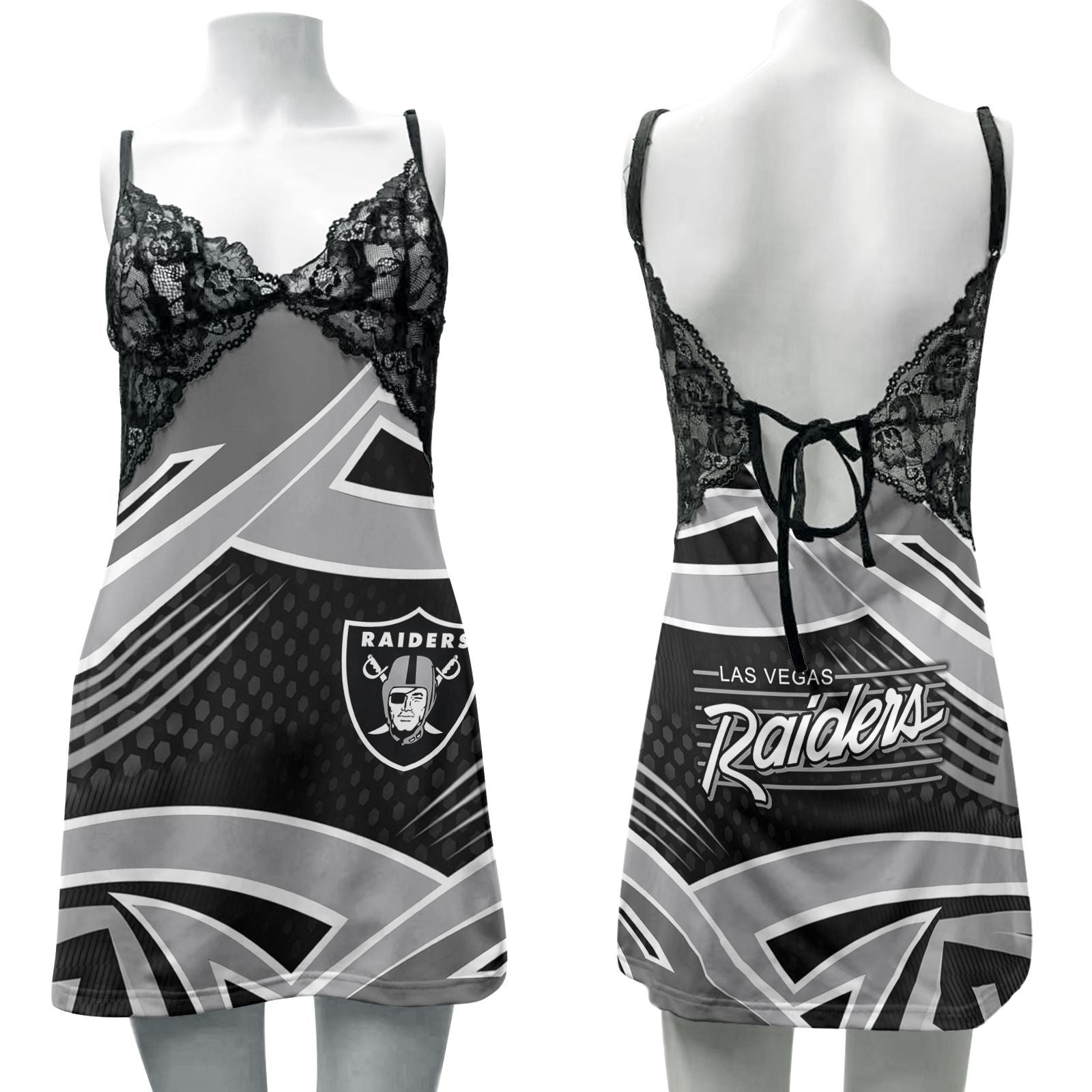 Las Vegas Raiders Lace Back Strap Slip Dress 197-2 – Perfect Fan Gear for NFL Enthusiasts!