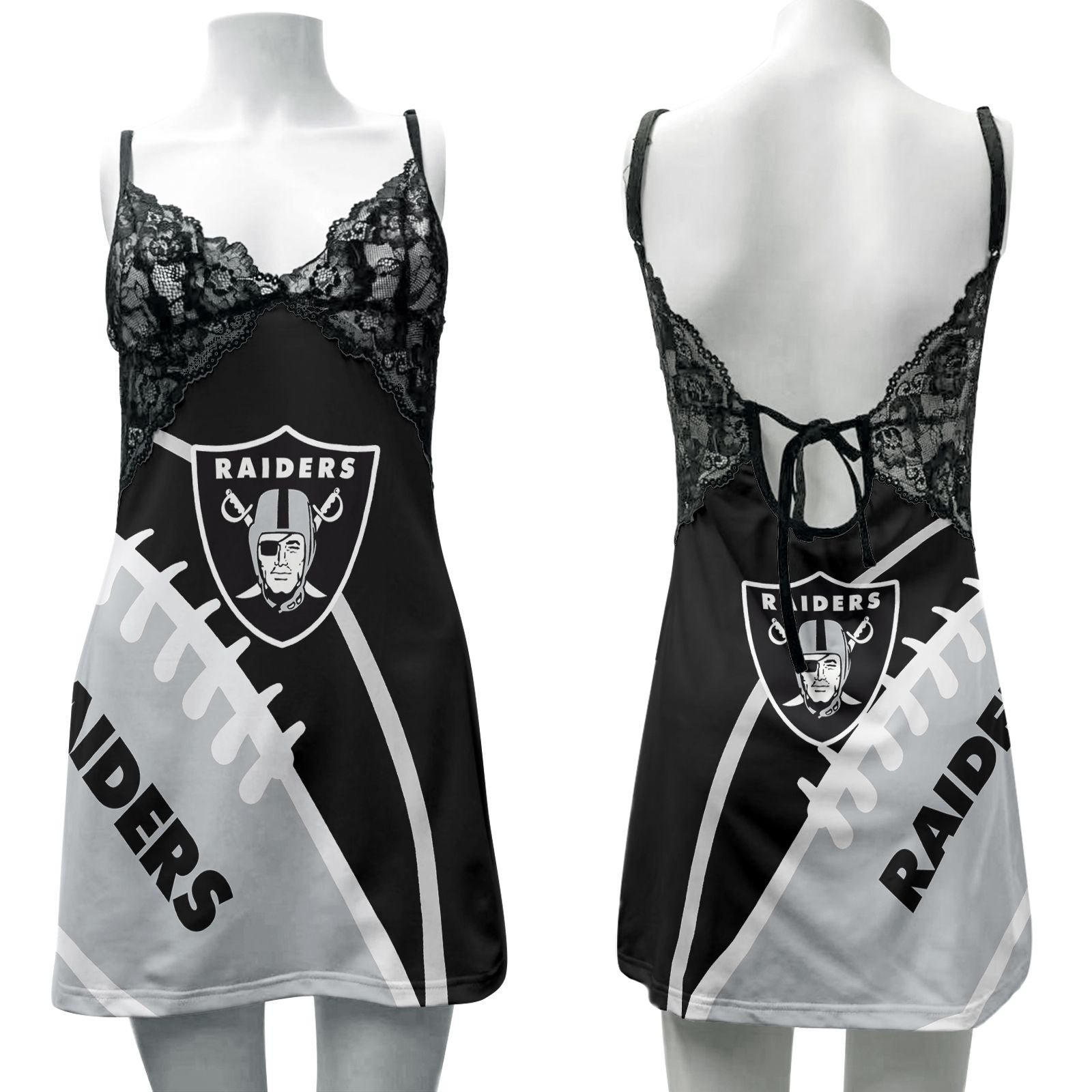 Las Vegas Raiders Lace Back Strap Slip Dress – Perfect NFL Fan Gear