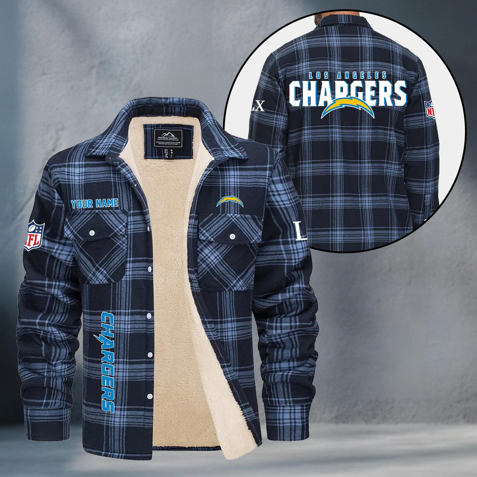 Los Angeles Chargers Fleece Flannel Plaid Jacket MN82