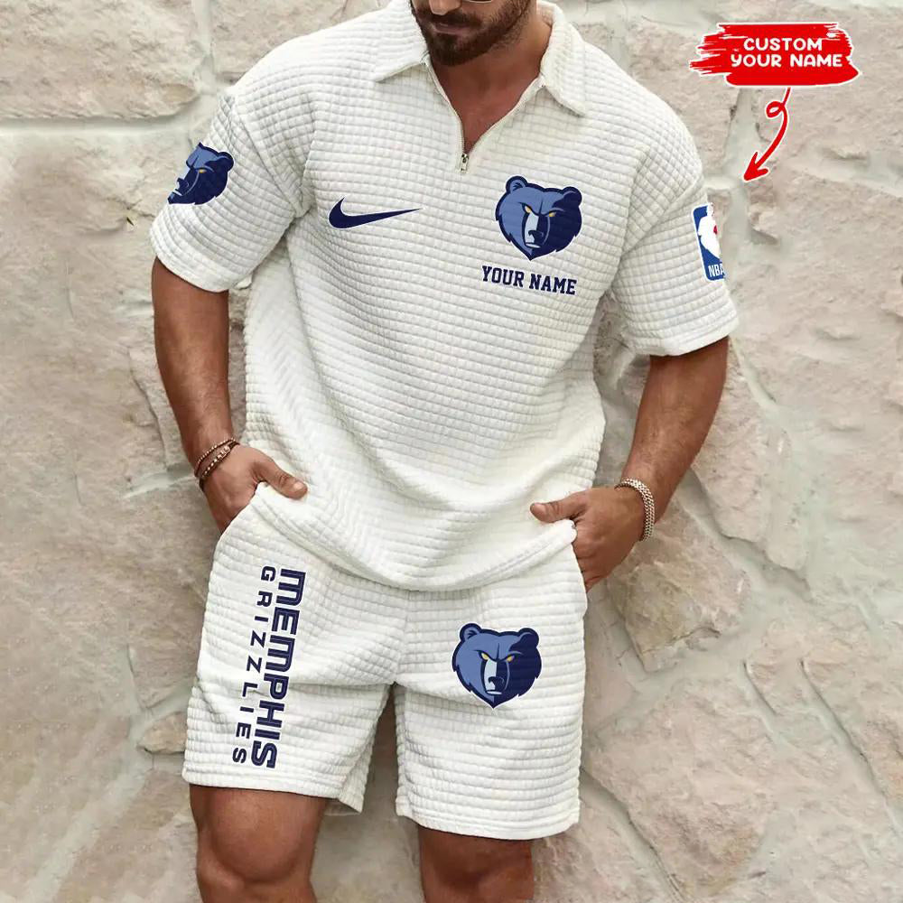Memphis Grizzlies Men’s Waffle Pattern Half Zipper Shirt And Shorts AZBT2DWSS000117