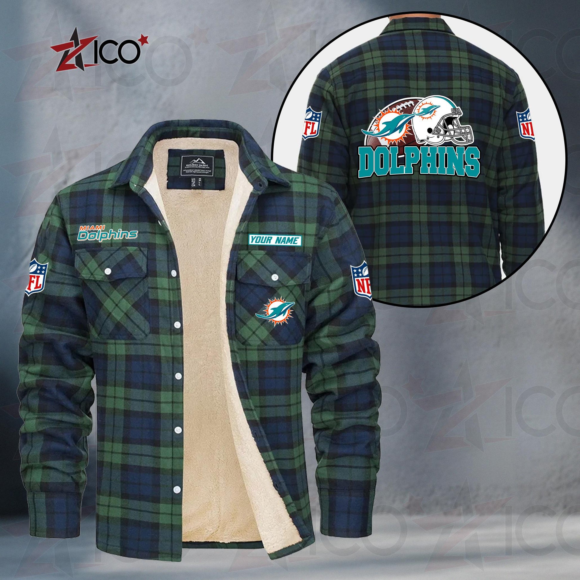 Miami Dolphins Fleece Flannel Plaid Jacket TG116