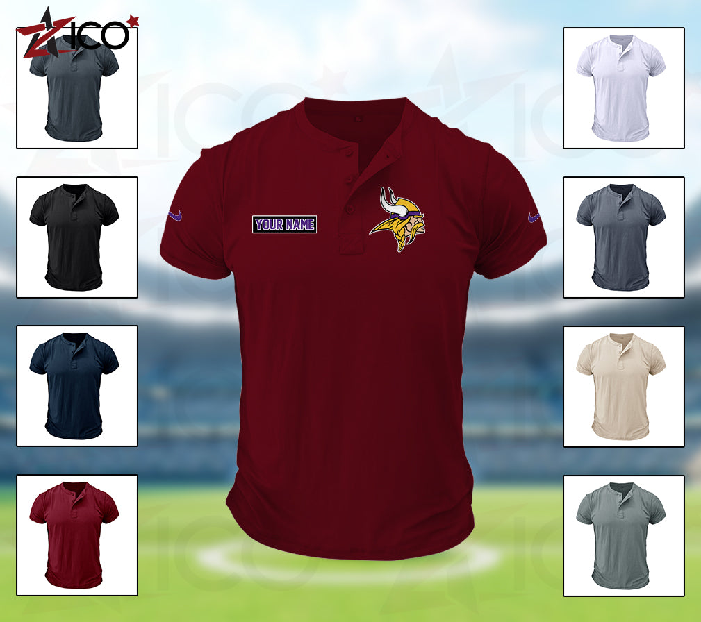 Minnesota Vikings Henley Short Sleeve T-Shirt Trending 2025 AZMN2DHS000021