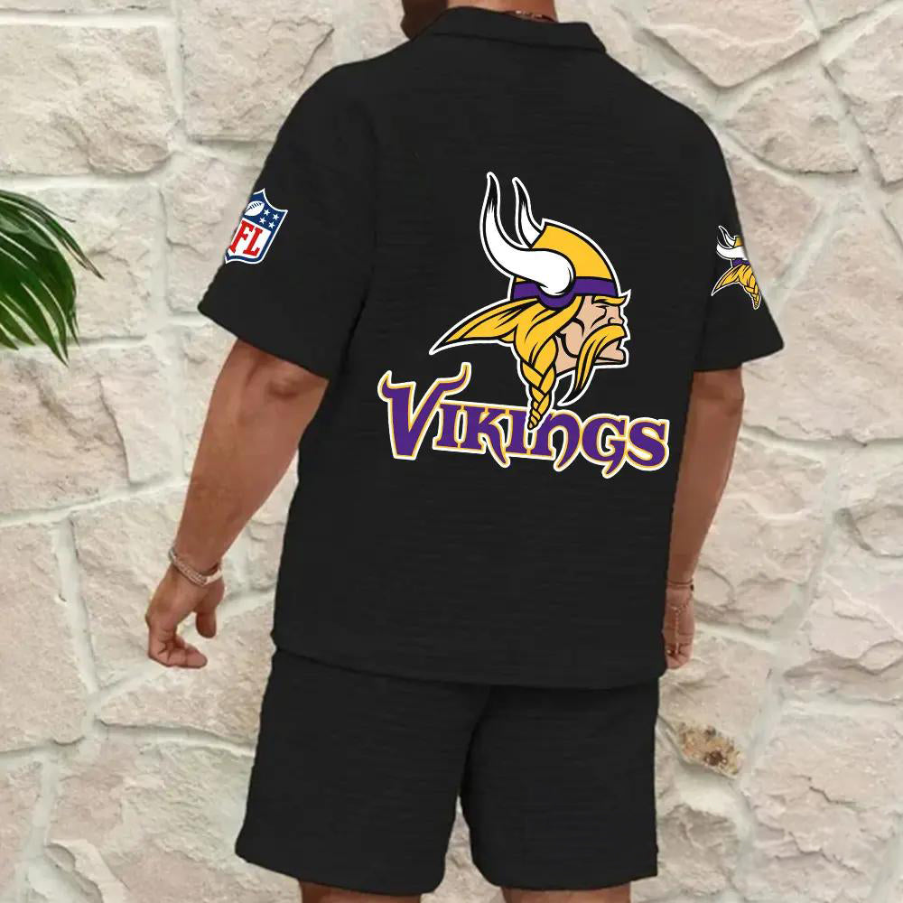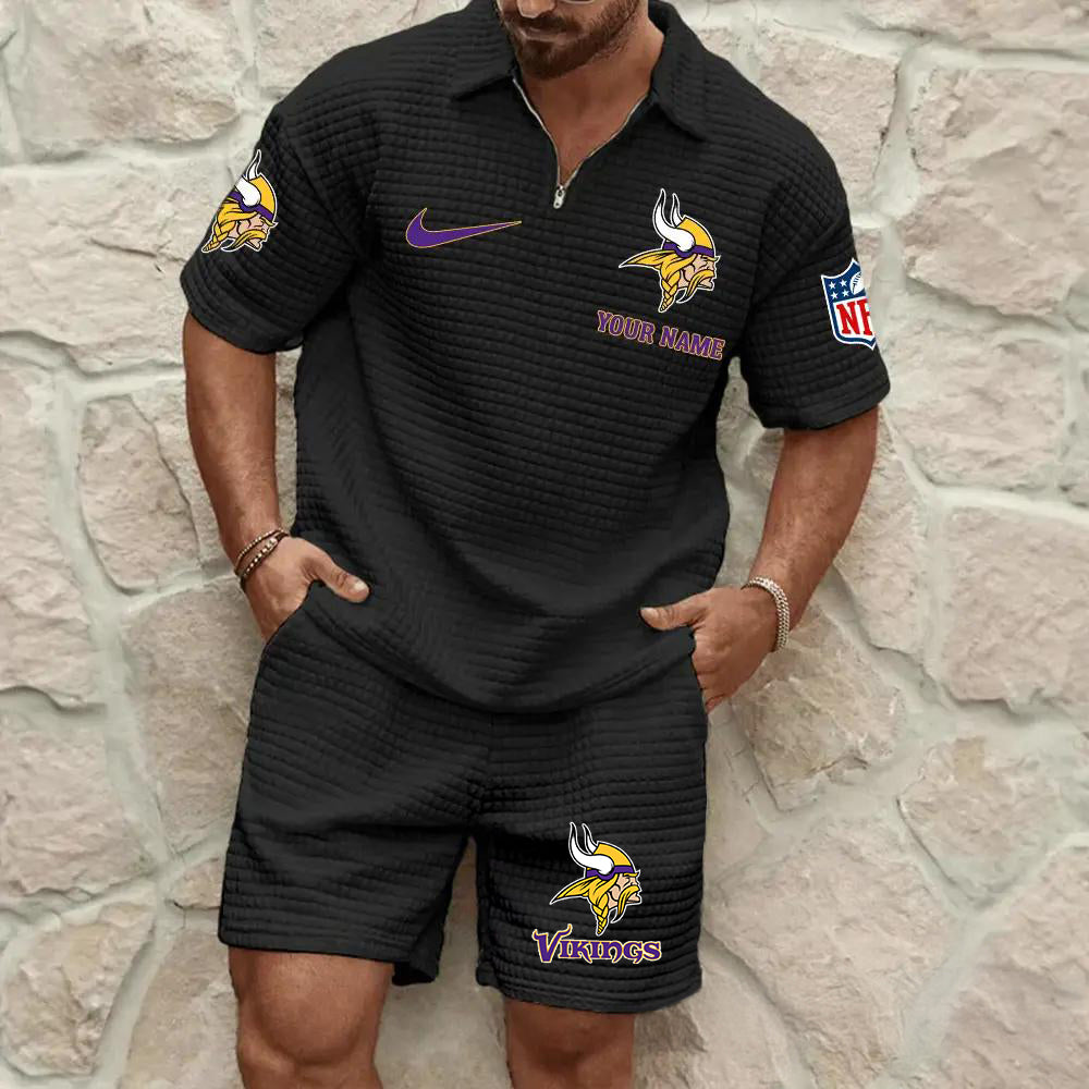 Minnesota Vikings Men’s Waffle Pattern Half Zipper Shirt And Shorts AZBT2DWSS000129