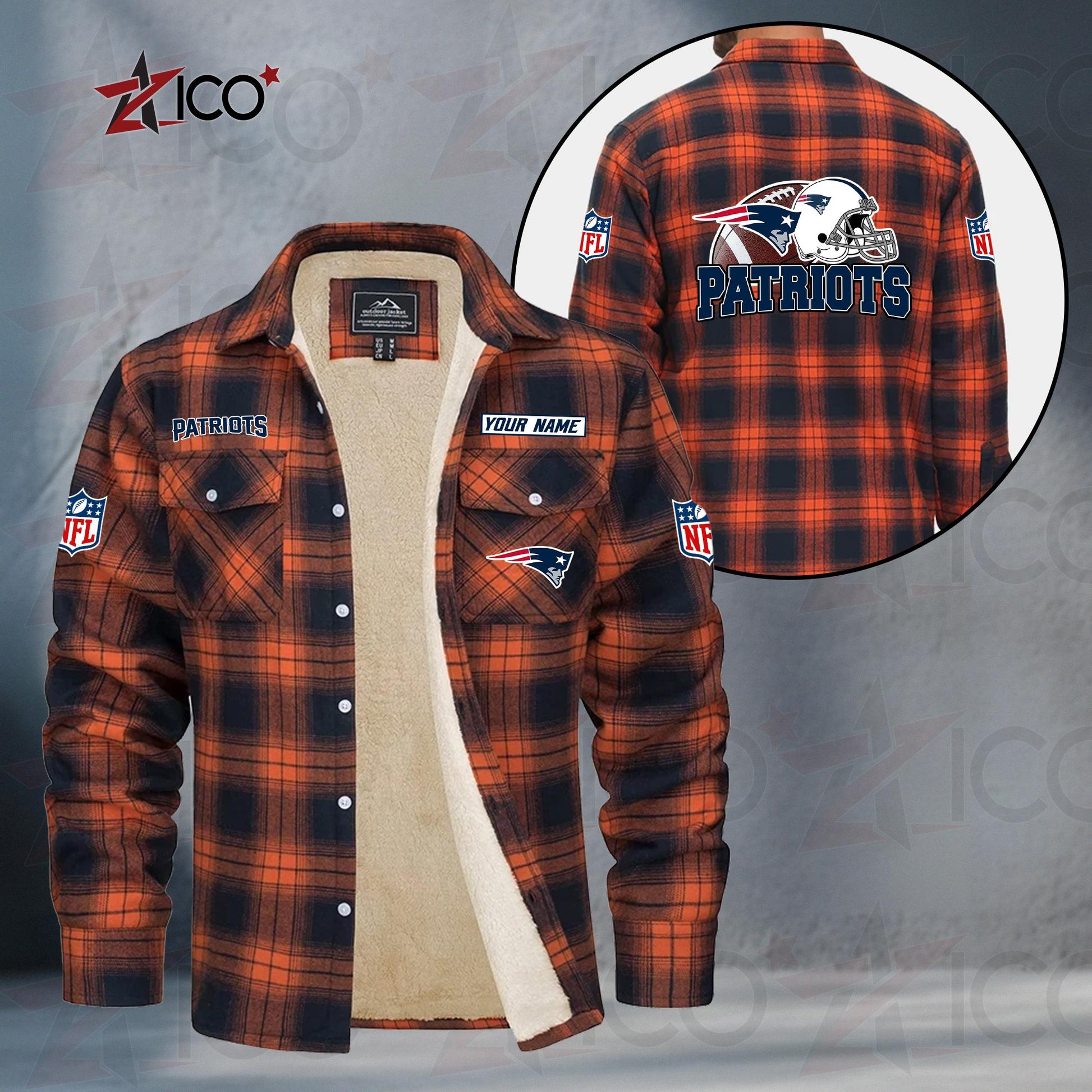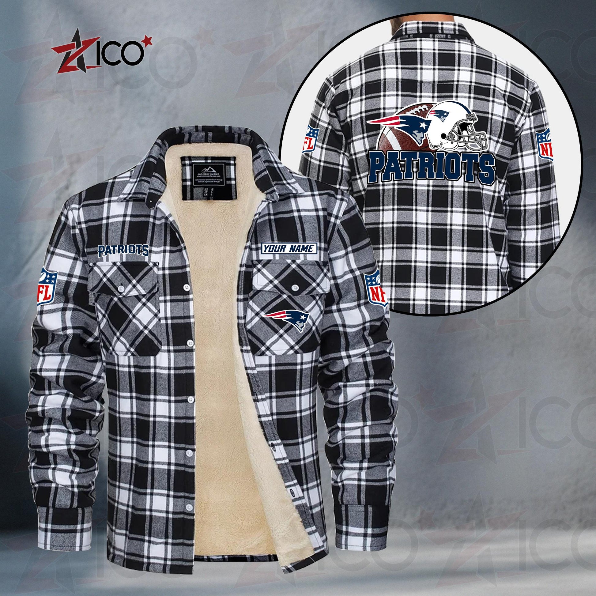 The durable flannel exterior blocks out the chill, while the ultra-soft sherpa-style lining keeps you warm from kickoff to the final whistle. Featuring bold NFL-inspired team graphics and an optional custom name or player number, this jacket is the perfect mix of comfort, spirit, and individuality.