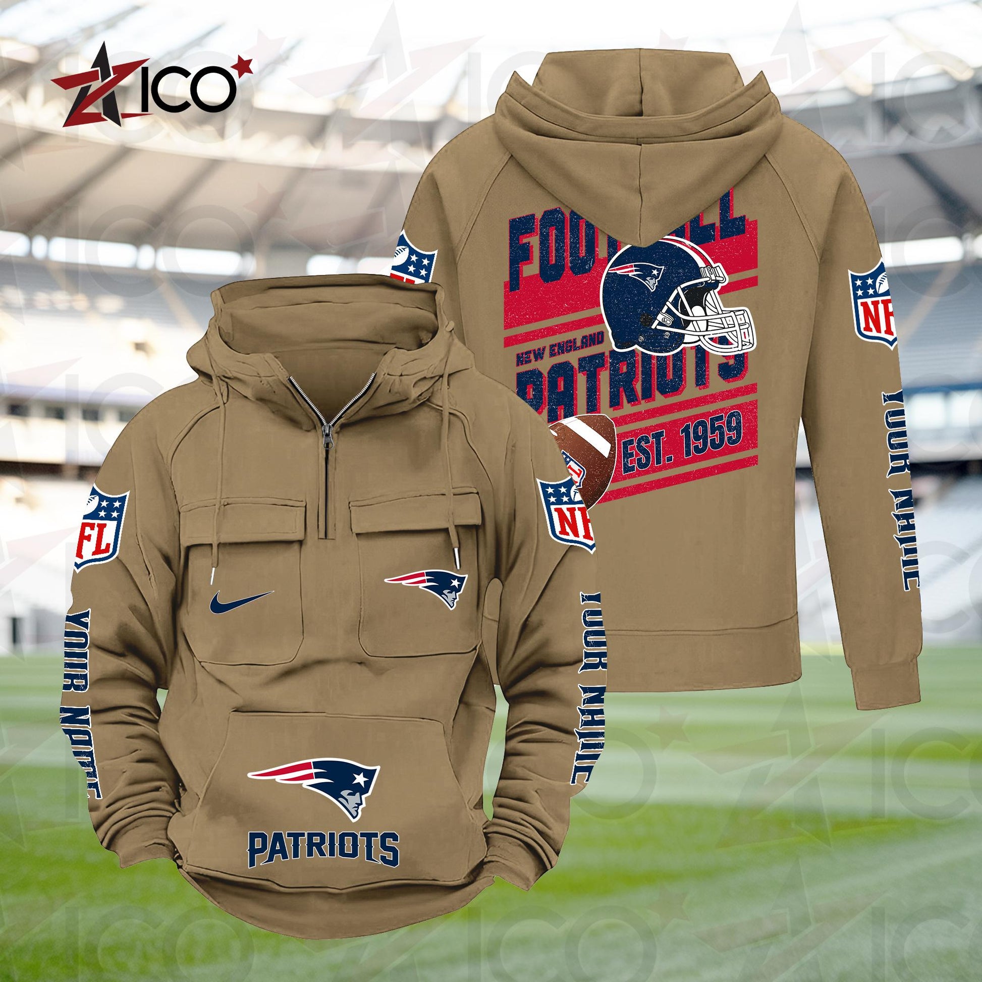 New England Patriots Personalized Multi-Pockets Zip Hoodie New 2025 AZTGMZHD000242