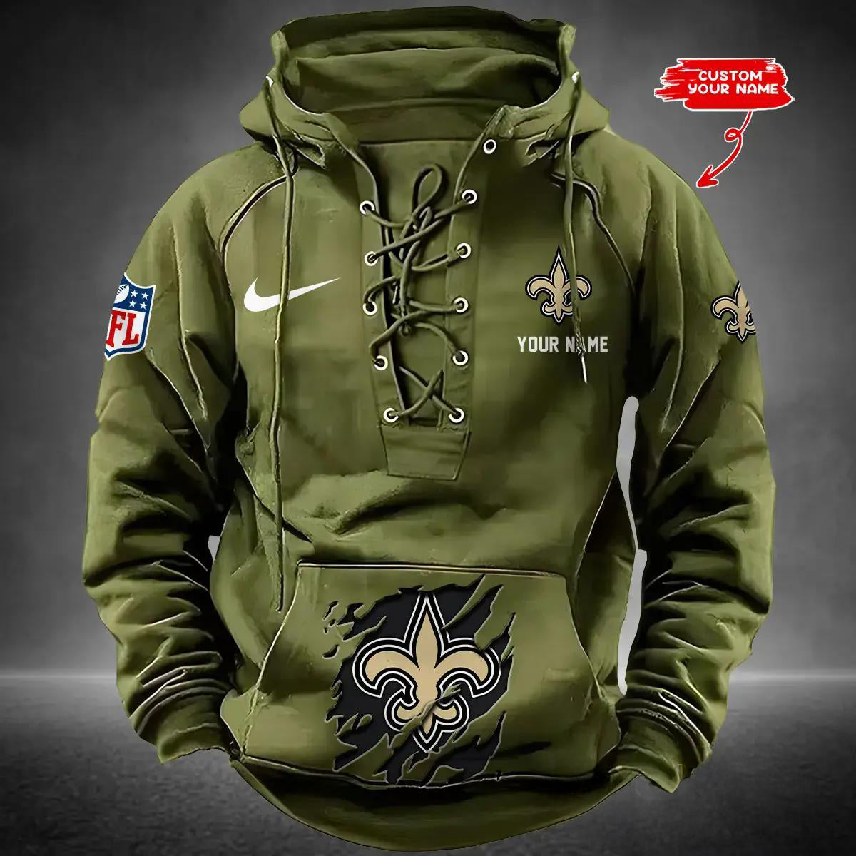 New Orleans Saints Custom Lace-Up Drawstring Hoodie HA22