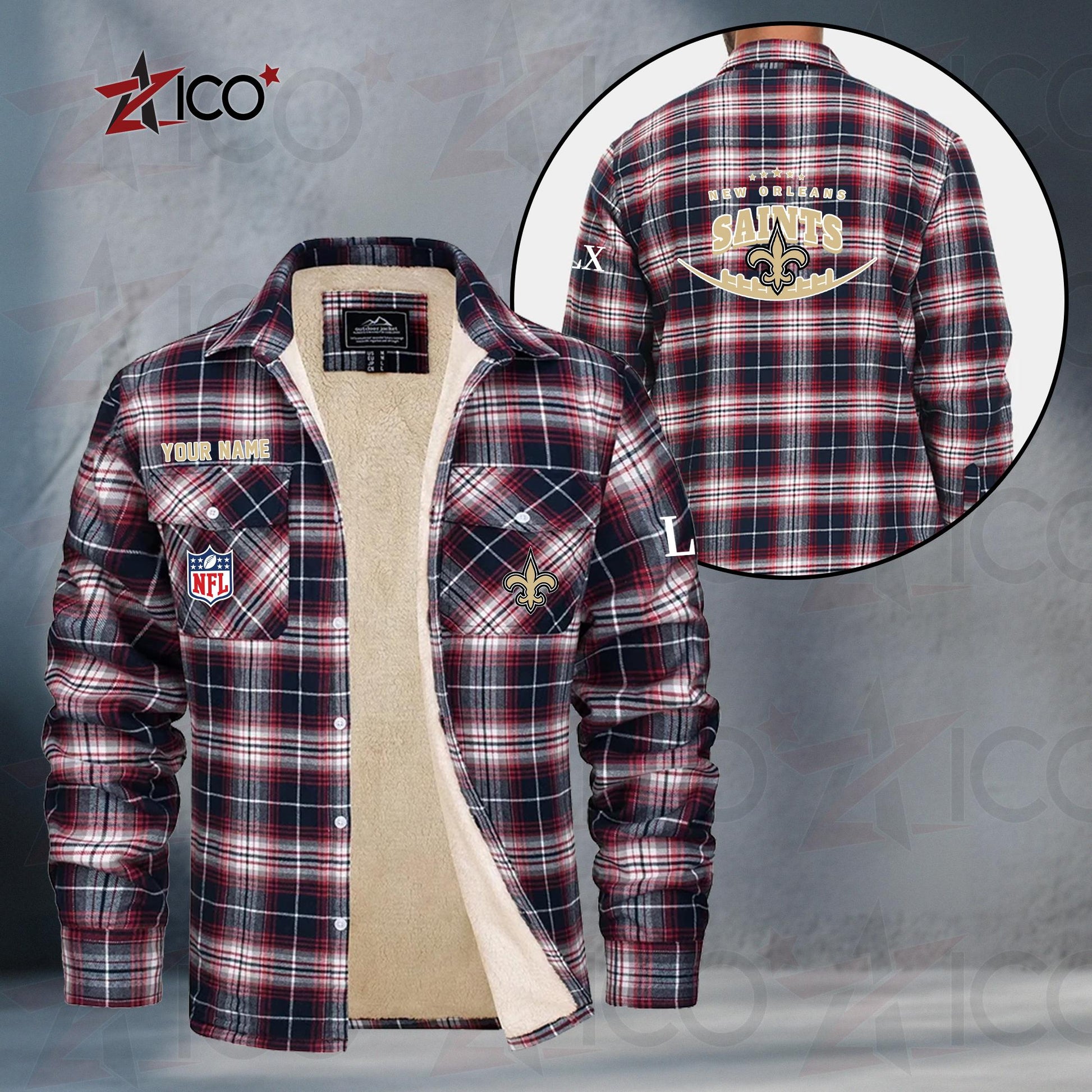 New Orleans Saints Fleece Flannel Plaid Jacket MN23