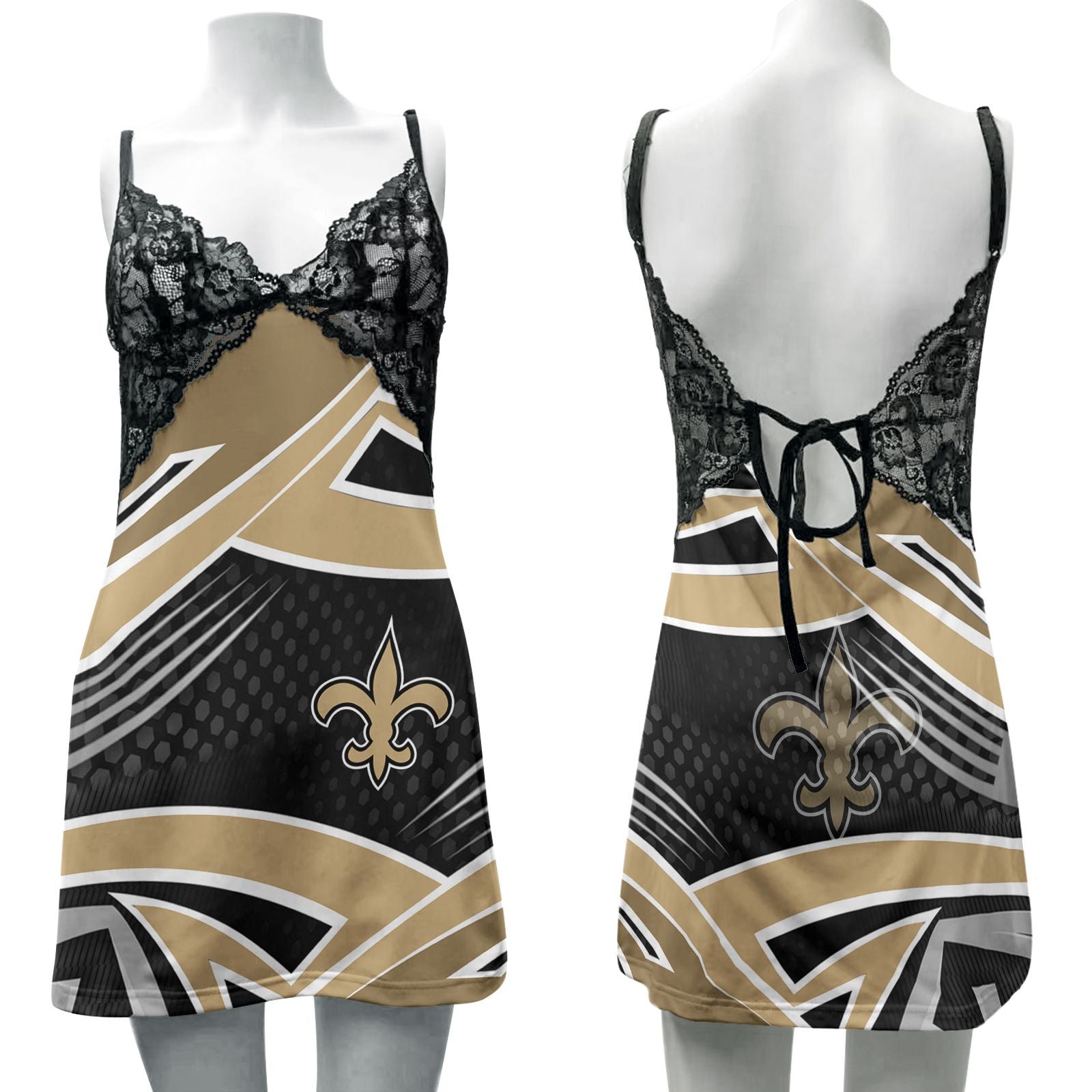 Get ready for football season! Order now to secure your exclusive New Orleans Saints Lace Back Strap Slip Dress and show your team pride! Limited stock available – act fast!