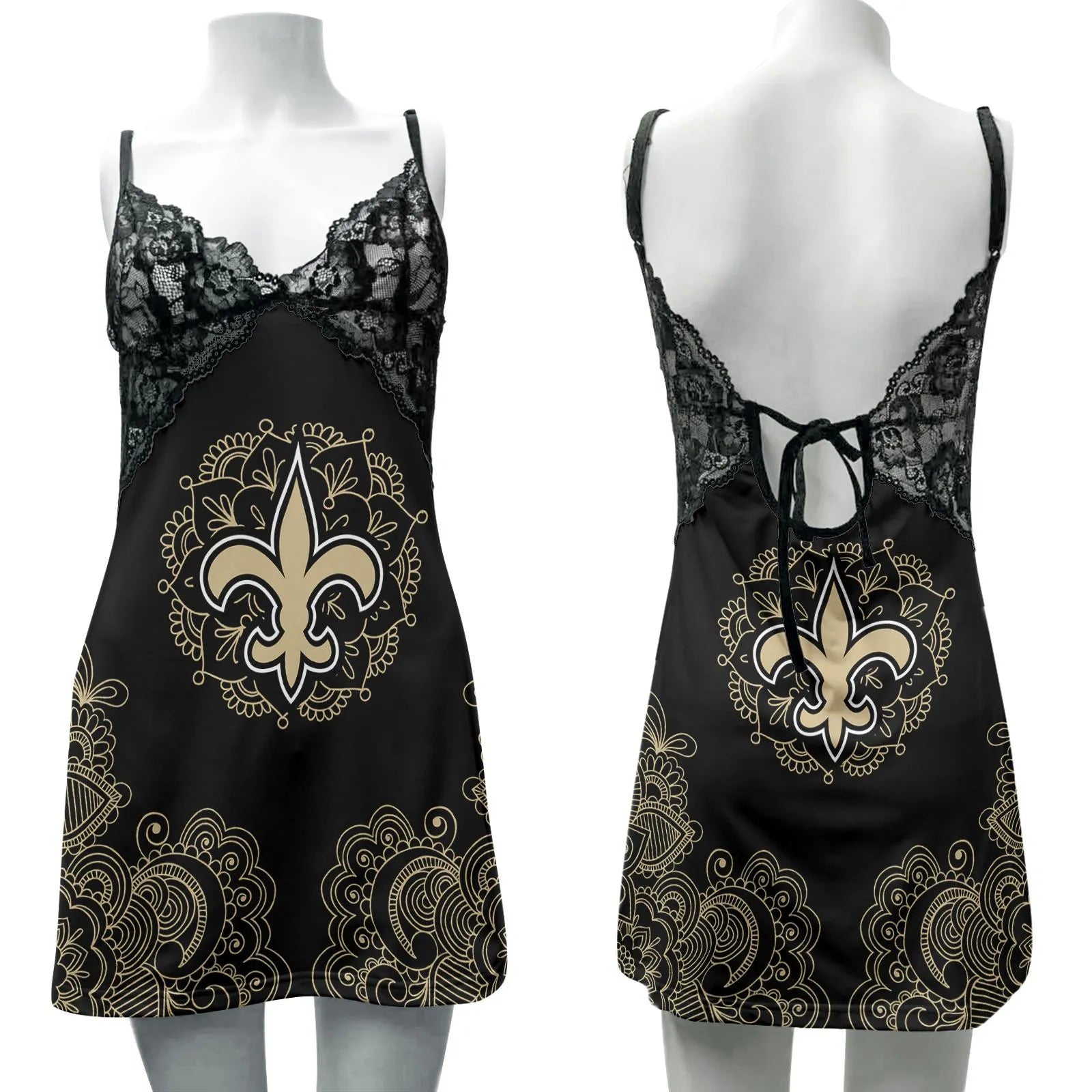 - Crafted from a comfortable blend of 95% Polyester and 5% Spandex, this New Orleans Saints Slip Dress is an essential addition to your NFL merchandise collection. The fabric offers flexibility and a lasting fit, ideal for showing off your team spirit!
