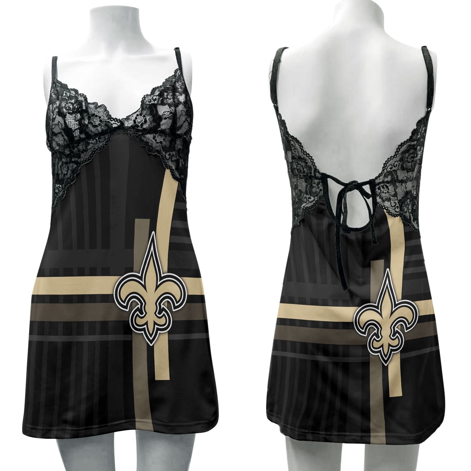 New Orleans Saints Lace Back Strap Slip Dress 99 – Perfect NFL Fan Gear