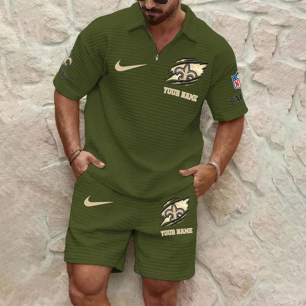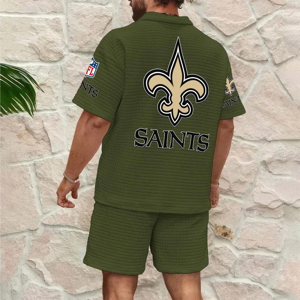 New Orleans Saints Men’s Waffle Pattern Half Zipper Shirt And Shorts AZBT2DWSS000139