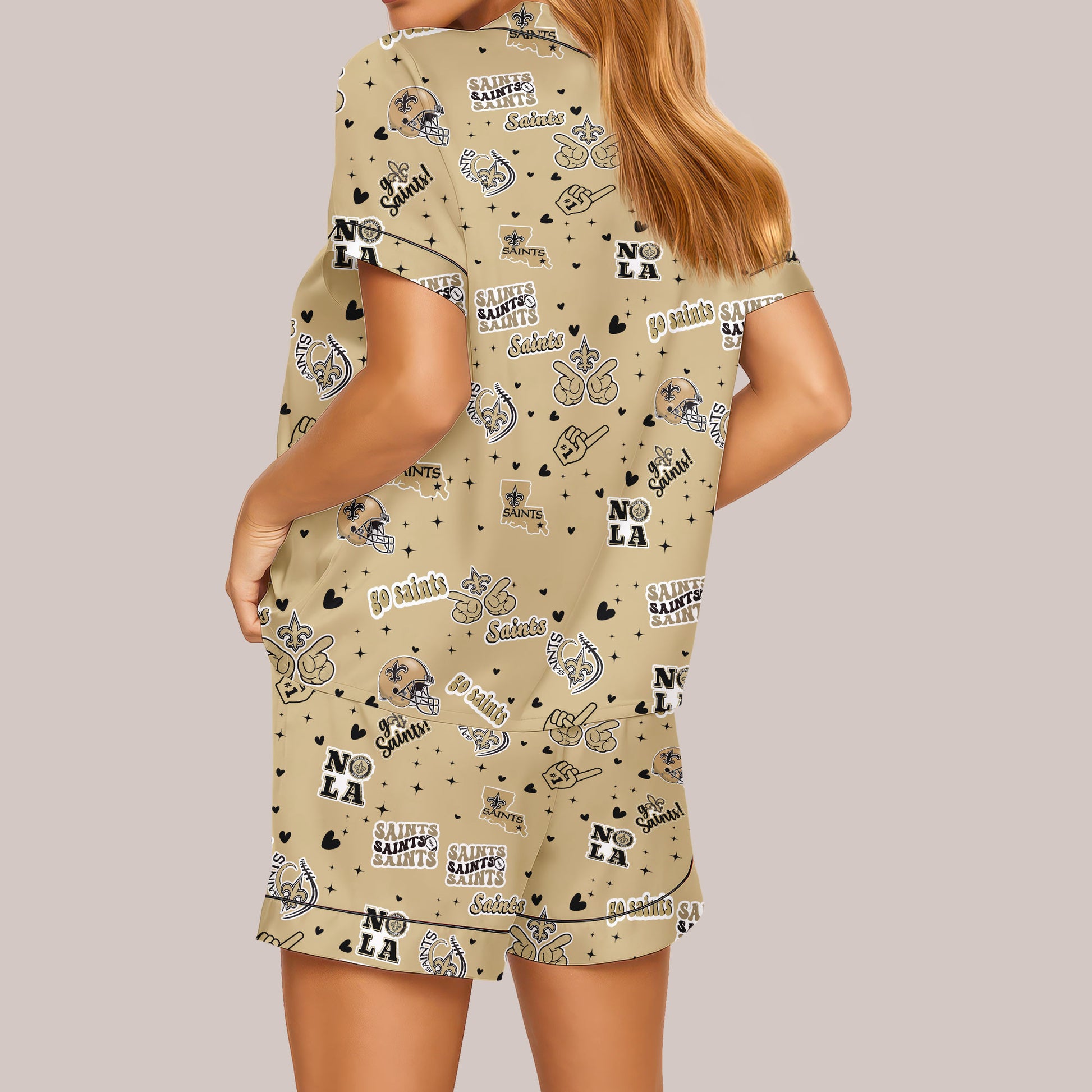 - Experience ultimate comfort with our Women Short Pajamas, designed for those who appreciate both style and softness. Made from a breathable, high-quality fabric blend, this set is perfect for lounging, sleeping, or relaxing on game days.