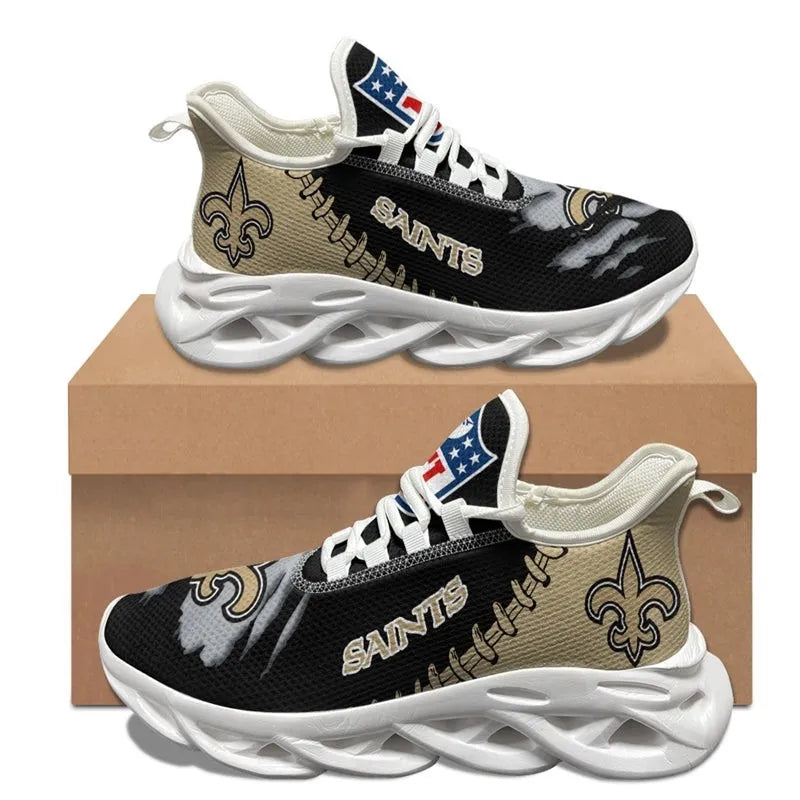 Show off your team spirit from head to toe with the stylish New Orleans Saints Sneakers 3D Max Soul Shoes. Adorned with the official NFL logo and team colors, these shoes complete your game day outfit perfectly.
