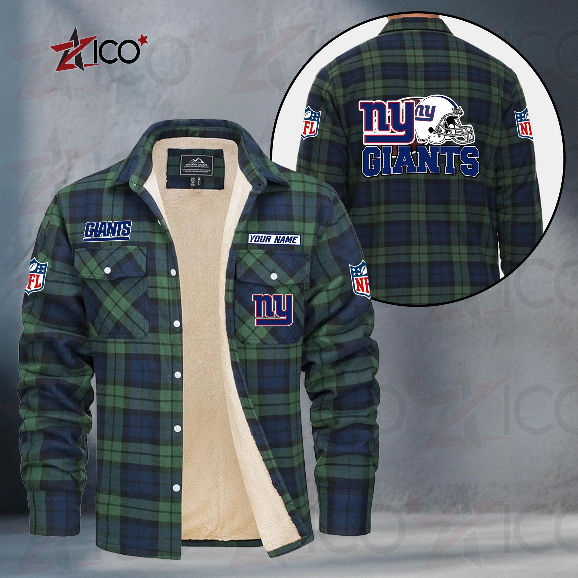 New York Giants Fleece Flannel Plaid Jacket TG120