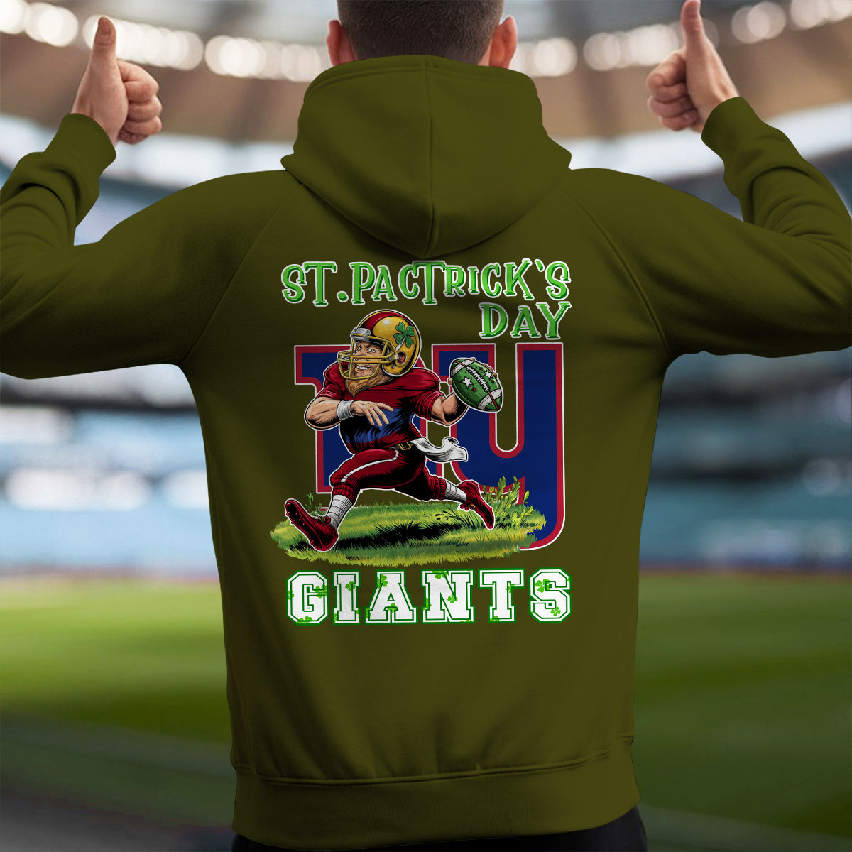 New York Giants St Patrick’s Day Collection Multi-Pockets Zip Hoodie AZCAMZHD000139