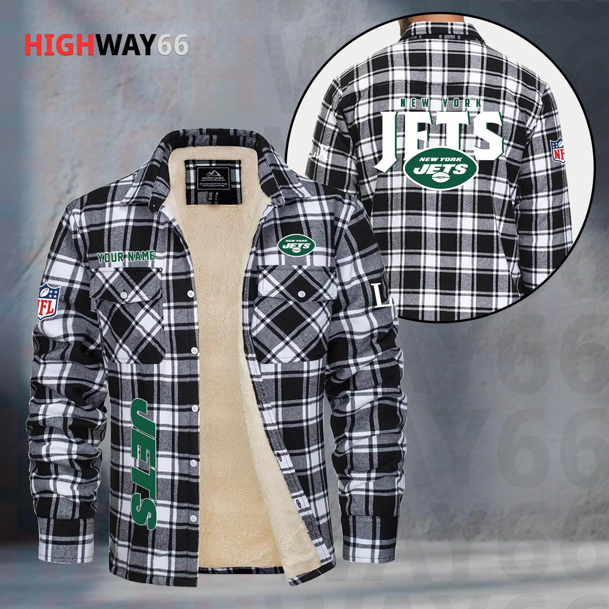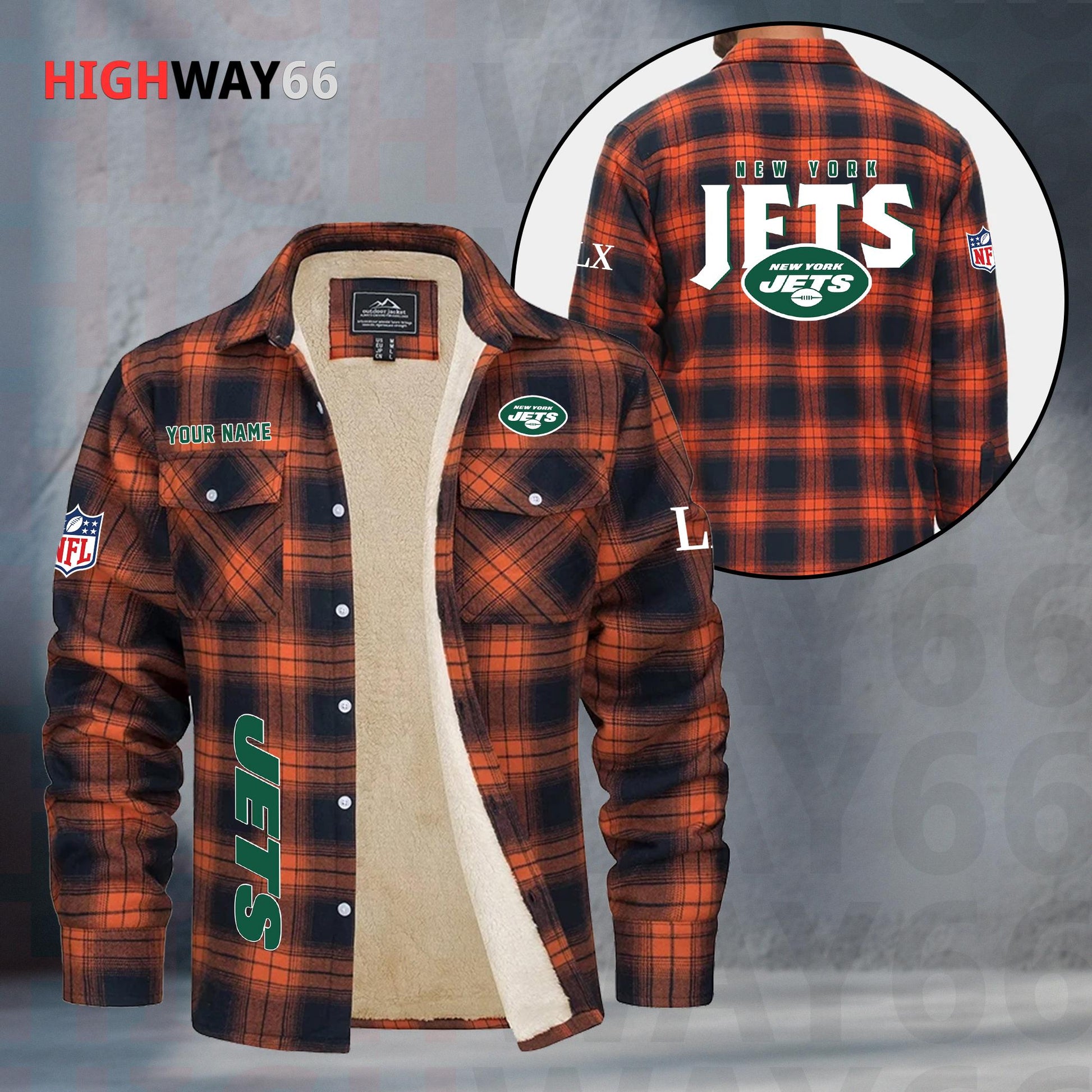 New York Jets Fleece Flannel Plaid Jacket MN89