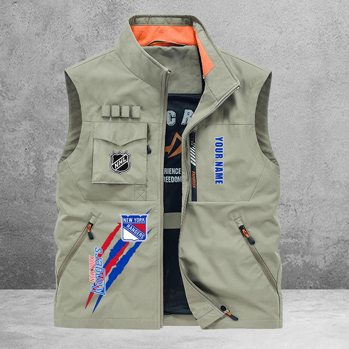 New York Rangers Personalized Multi-Pockets Vest – Perfect for Outdoor Enthusiasts
