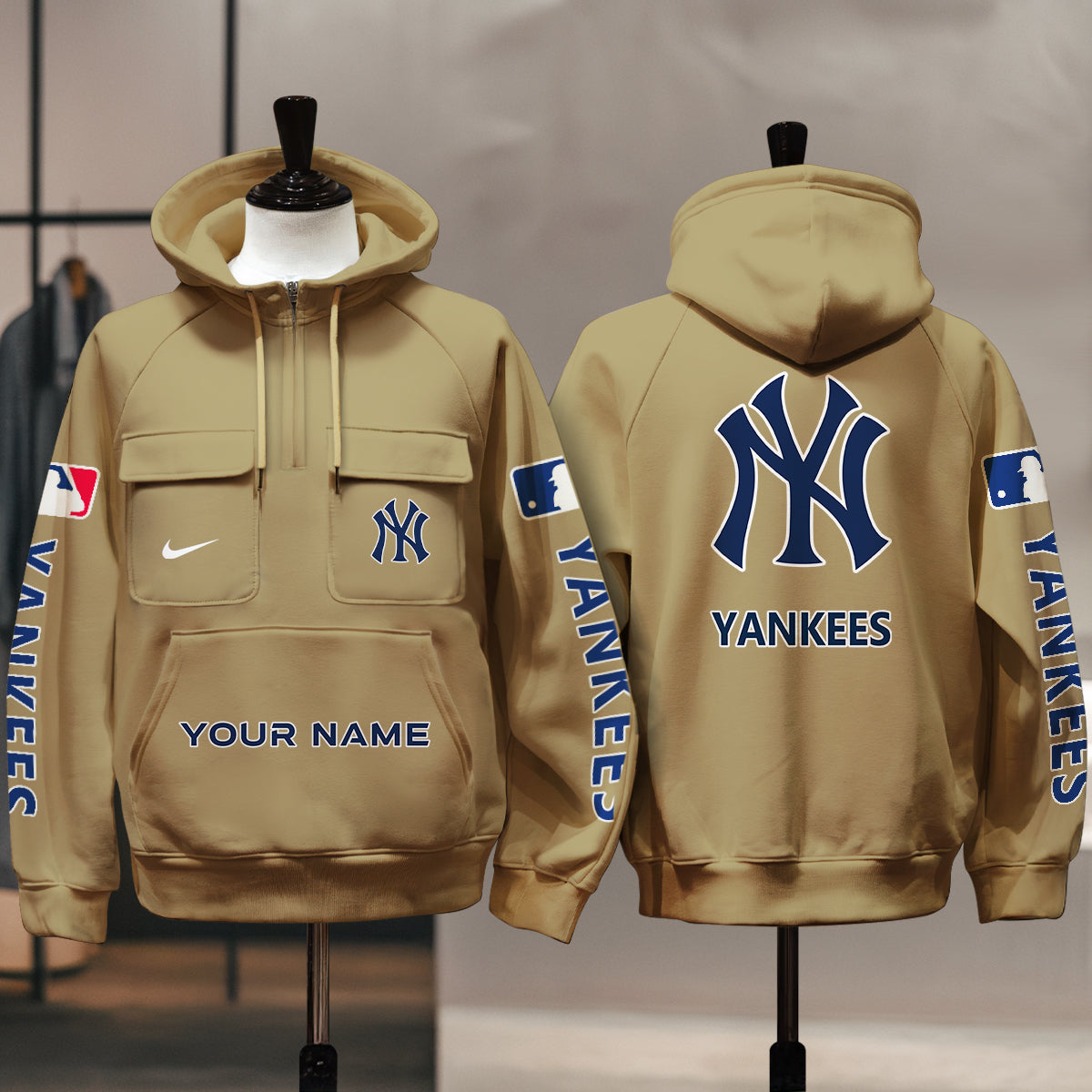 New York Yankees New Collection Multi-Pockets Zip Hoodie MLB AZMNMZHD000179